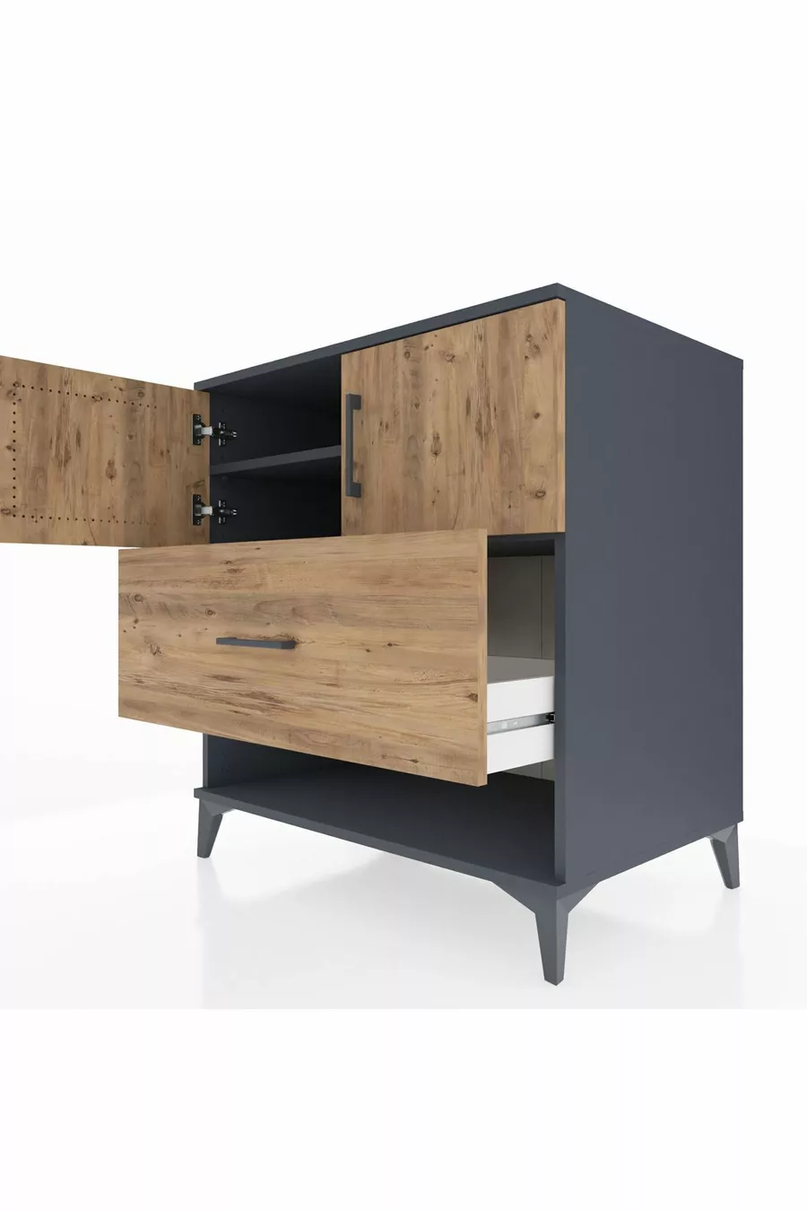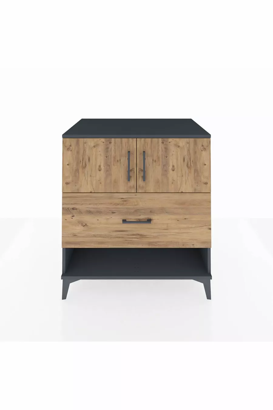 خزانة كرونوس ذات درج واحد ورفين وغطاءين، أنترسايت-صنوبر
