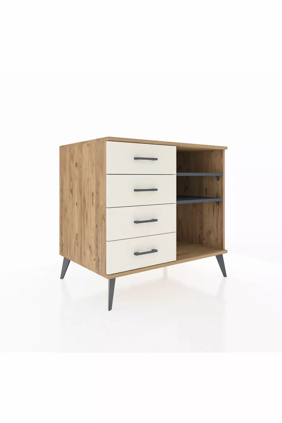 خزانة كرونوس برفين وأربع أدراج، صنوبر-رمادي/حجر رملي