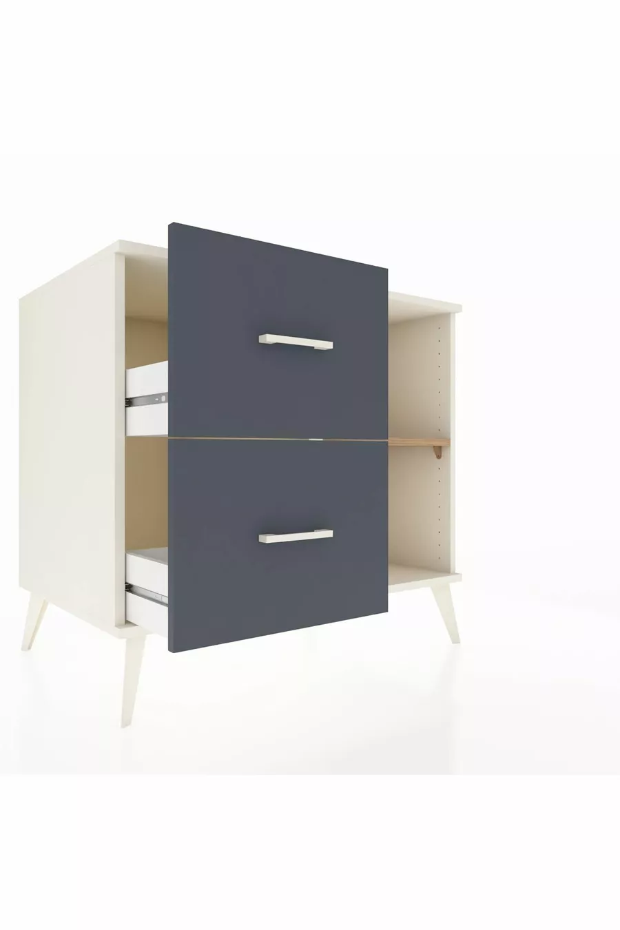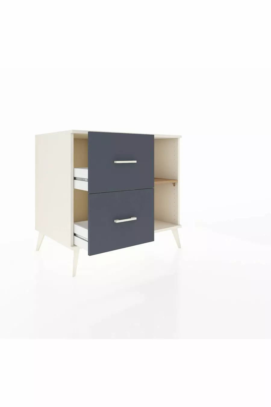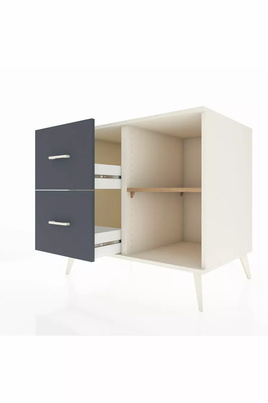 خزانة كرونوس مع رف واحد ودرجين، حجر القمر-صنوبر/أنثراسيت