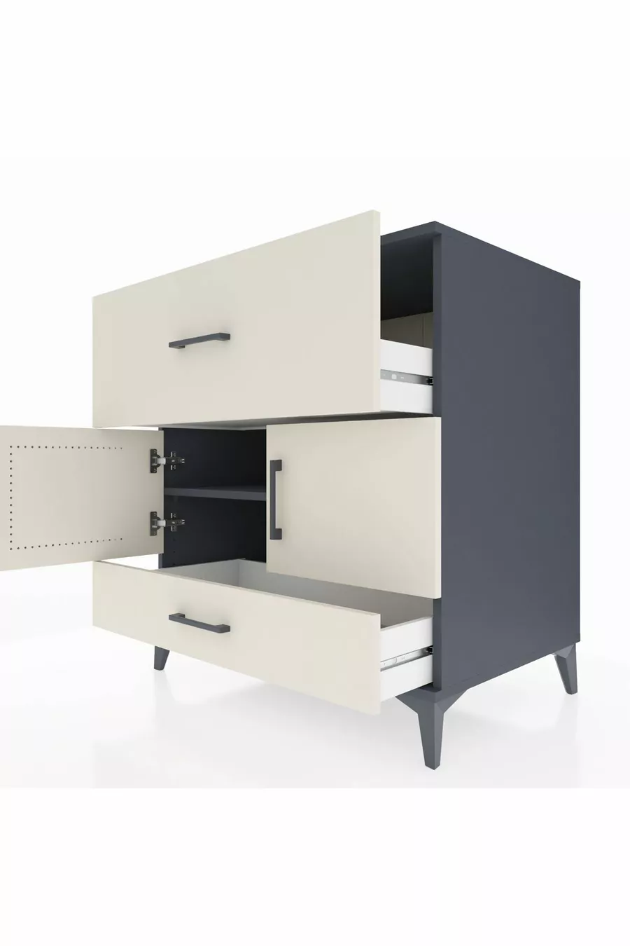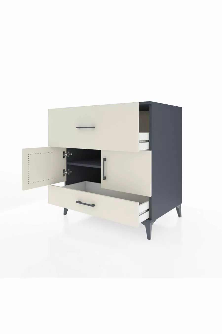 خزانة كرونوس رف واحد درجين و بابين أنثراسايت-حجر رملي