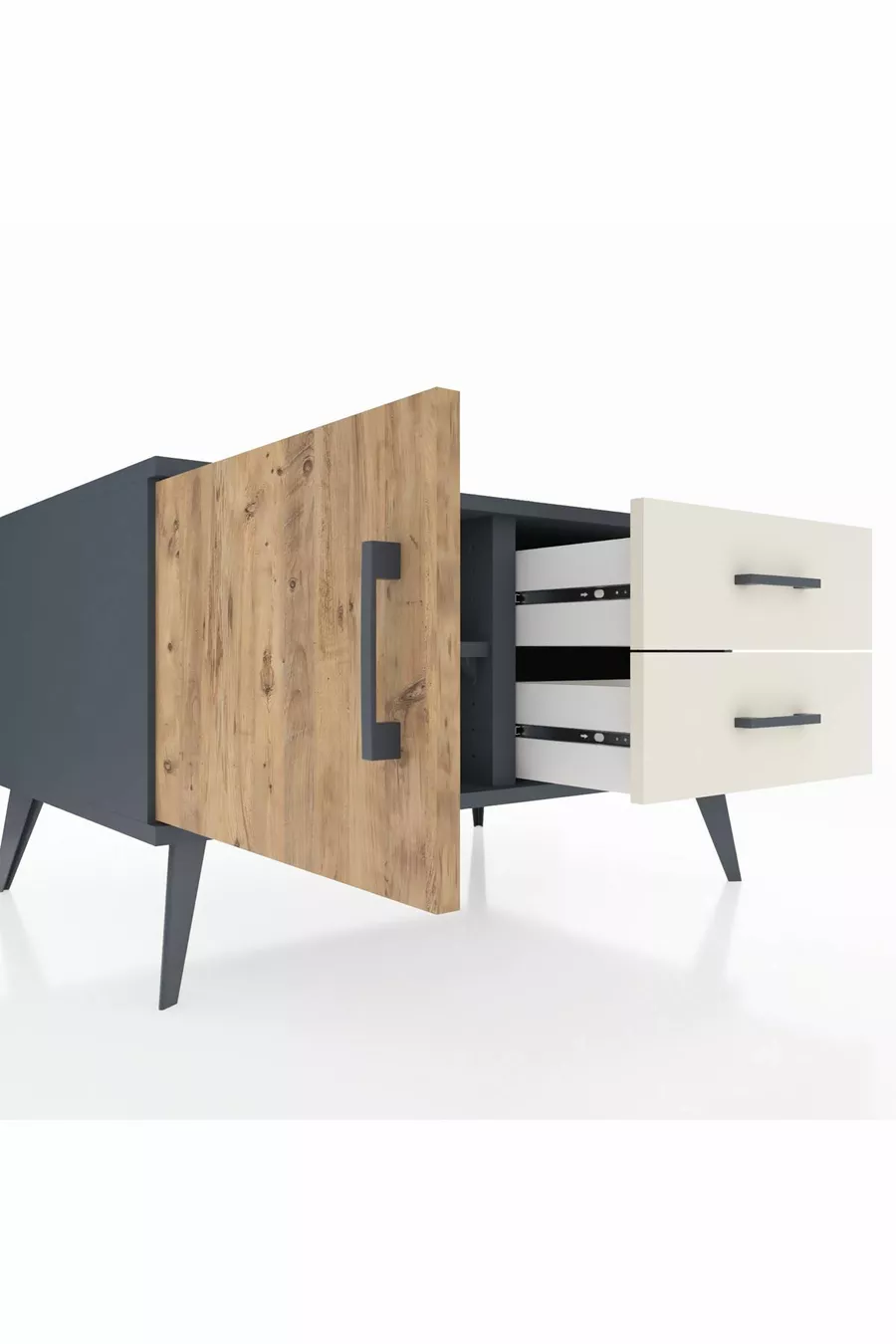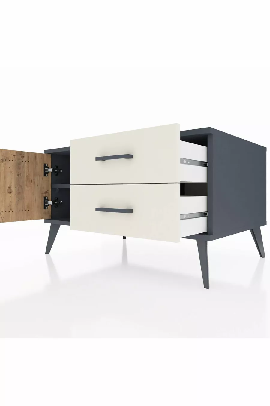 خزانة كرونوس ذات رف واحد ودرجين وباب واحد أنترسايت-صنوبر/حجر رملي