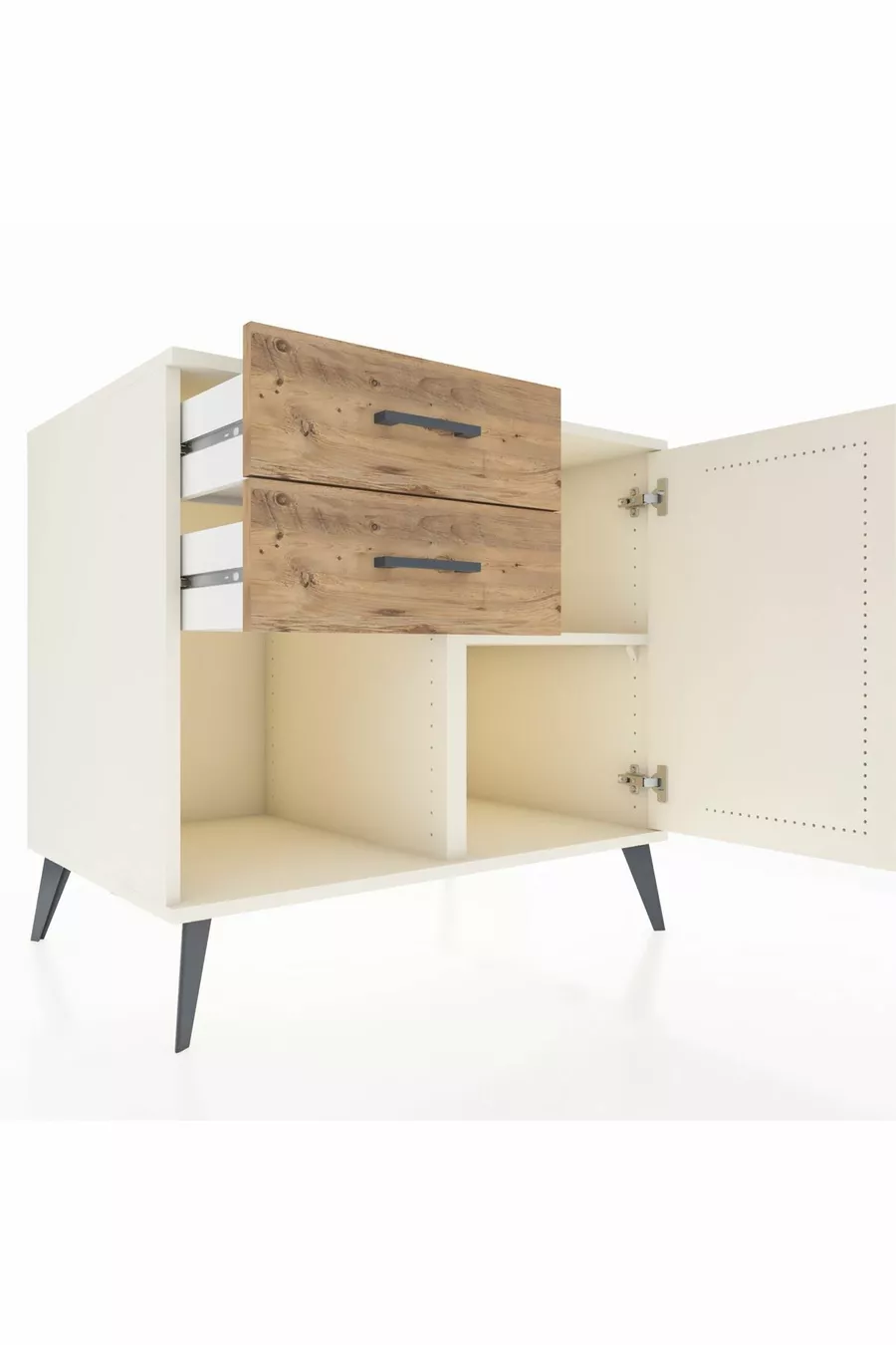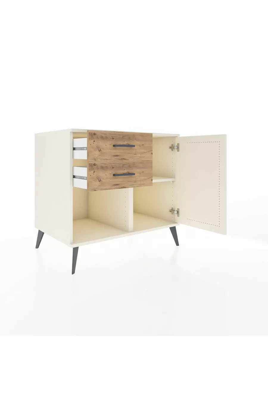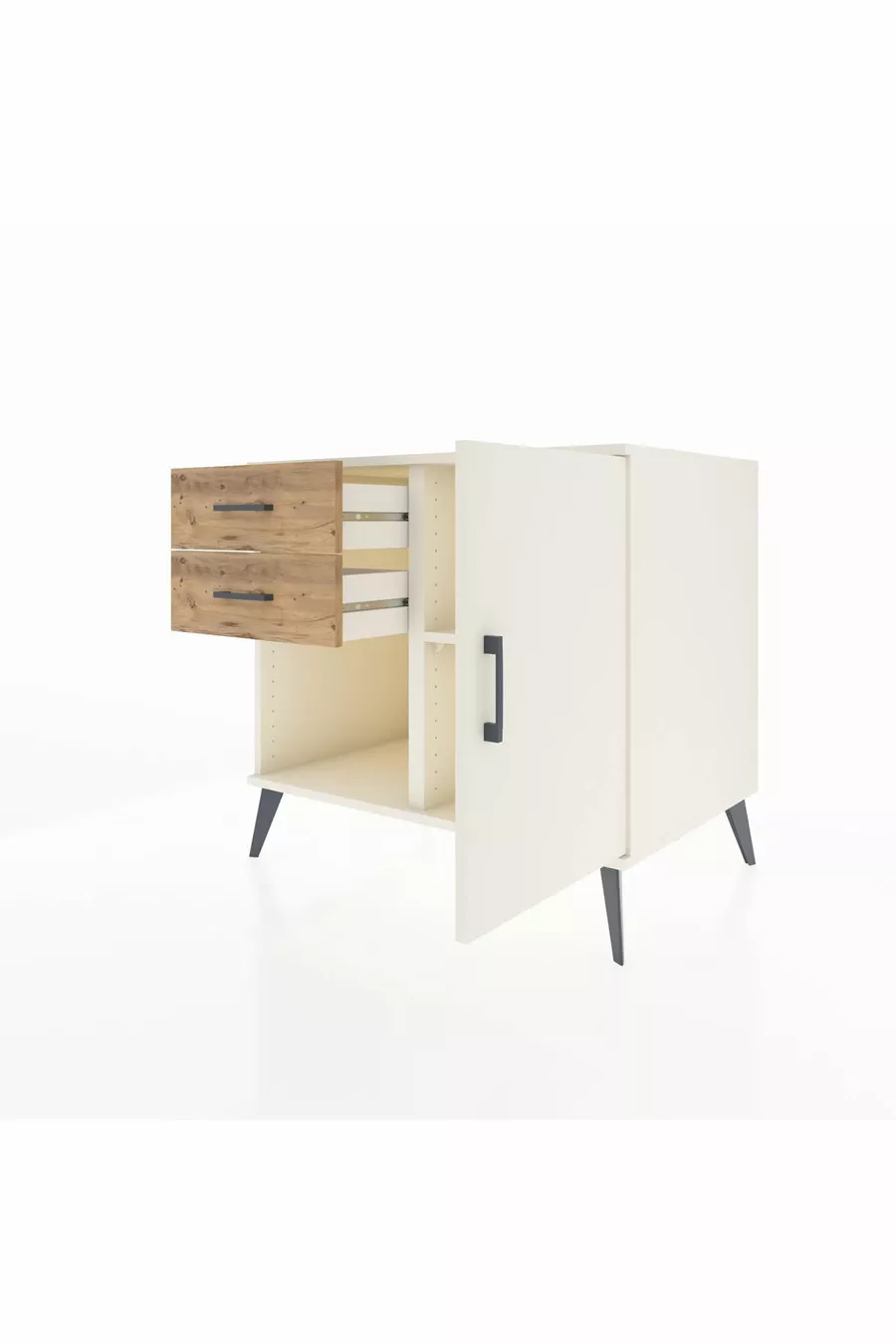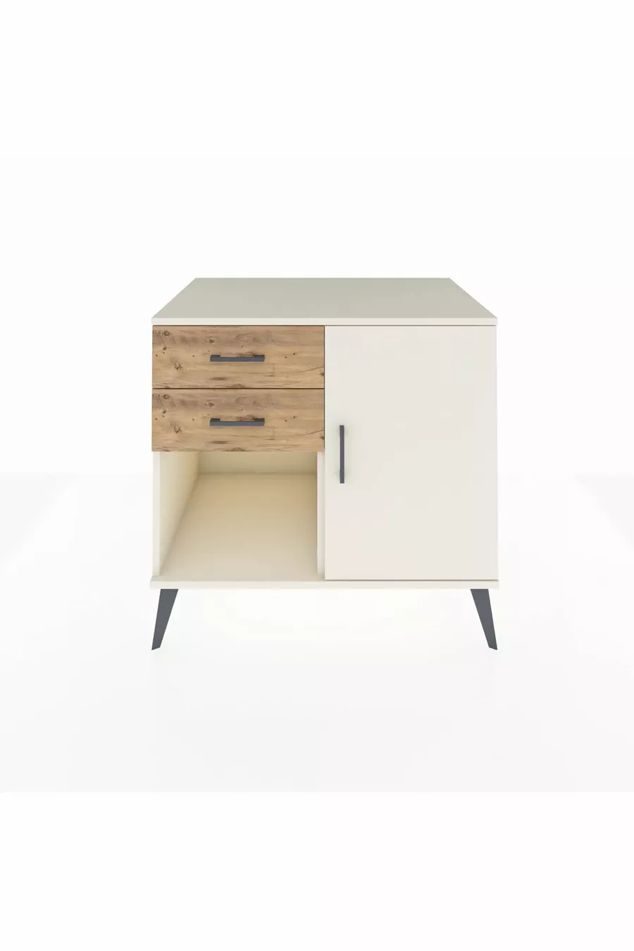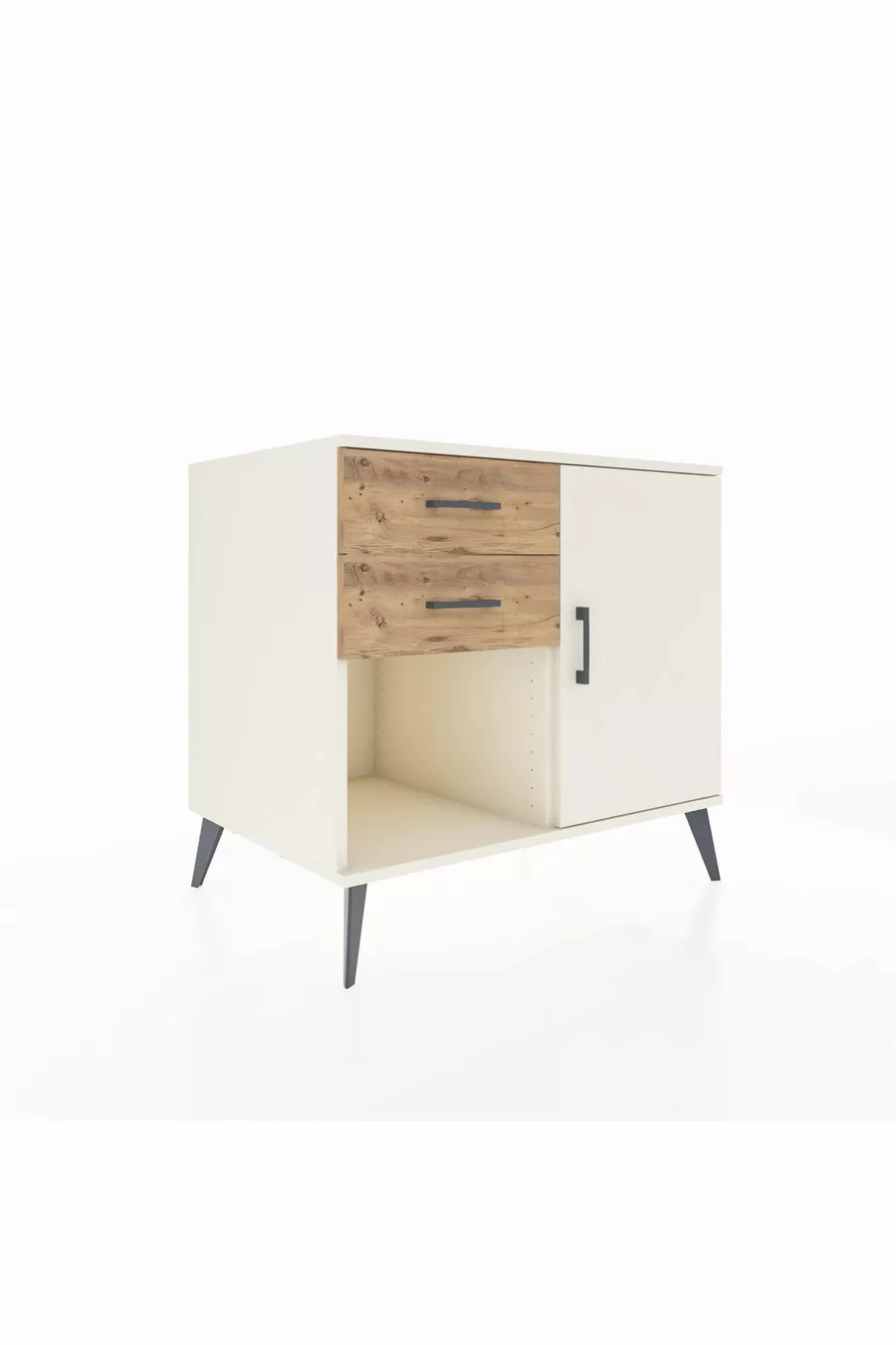خزانة كرونوس رف واحد ودرجين مع باب واحد، لون حجر القمر/صنوبر