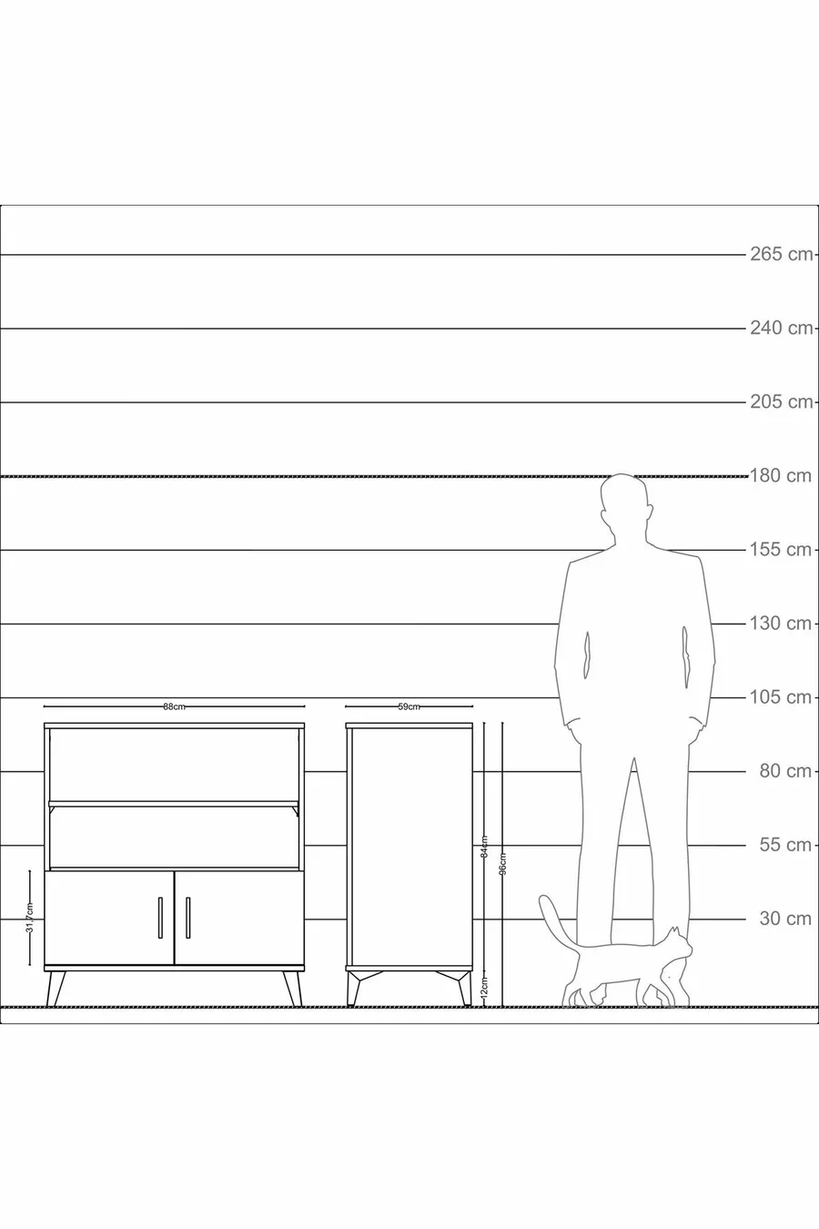 خزانة كرونوس بثلاثة أرفف وبابين، خشب الصنوبر-صنوبر