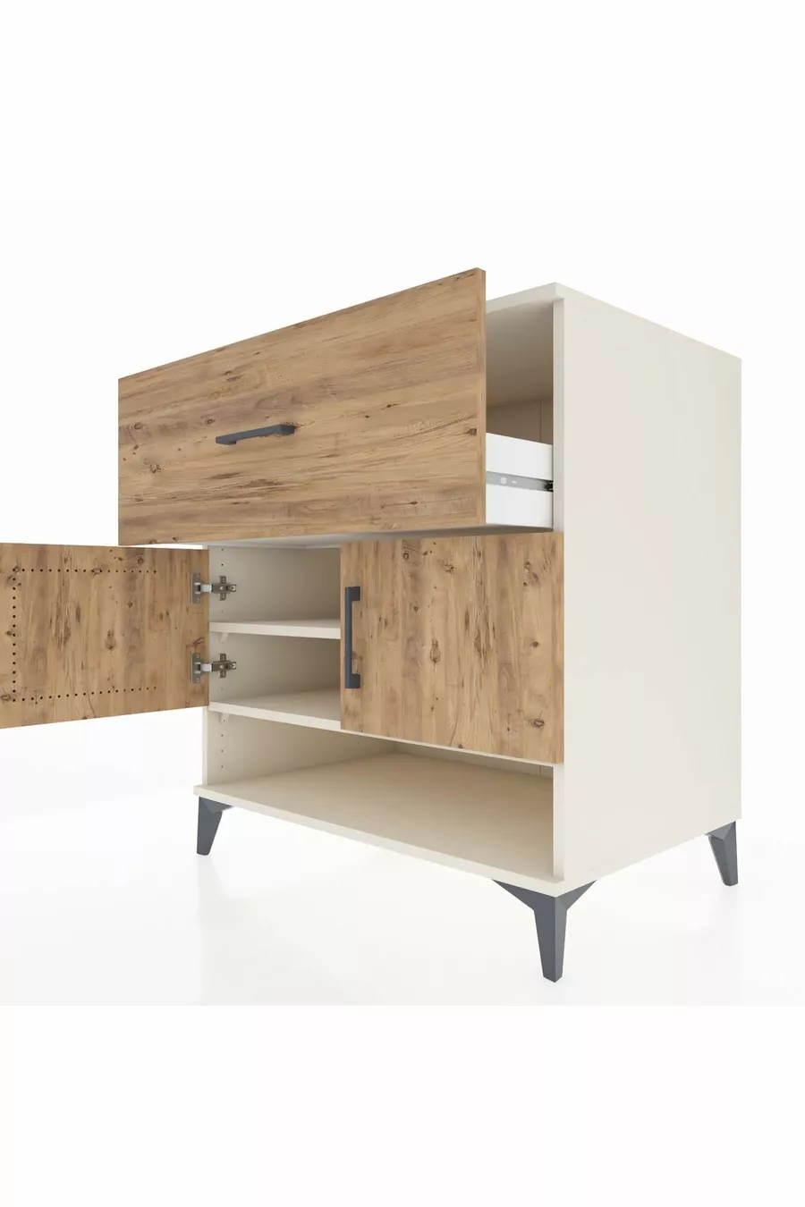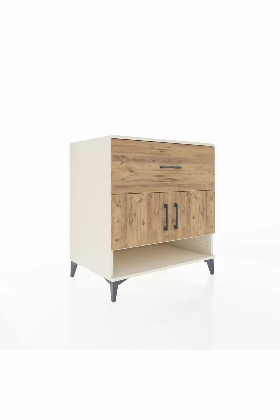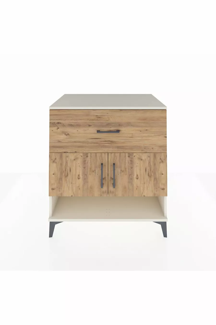 خزانة كرونوس ذات درج واحد ورفين وغطاءين، لون حجر القمر والصنوبر