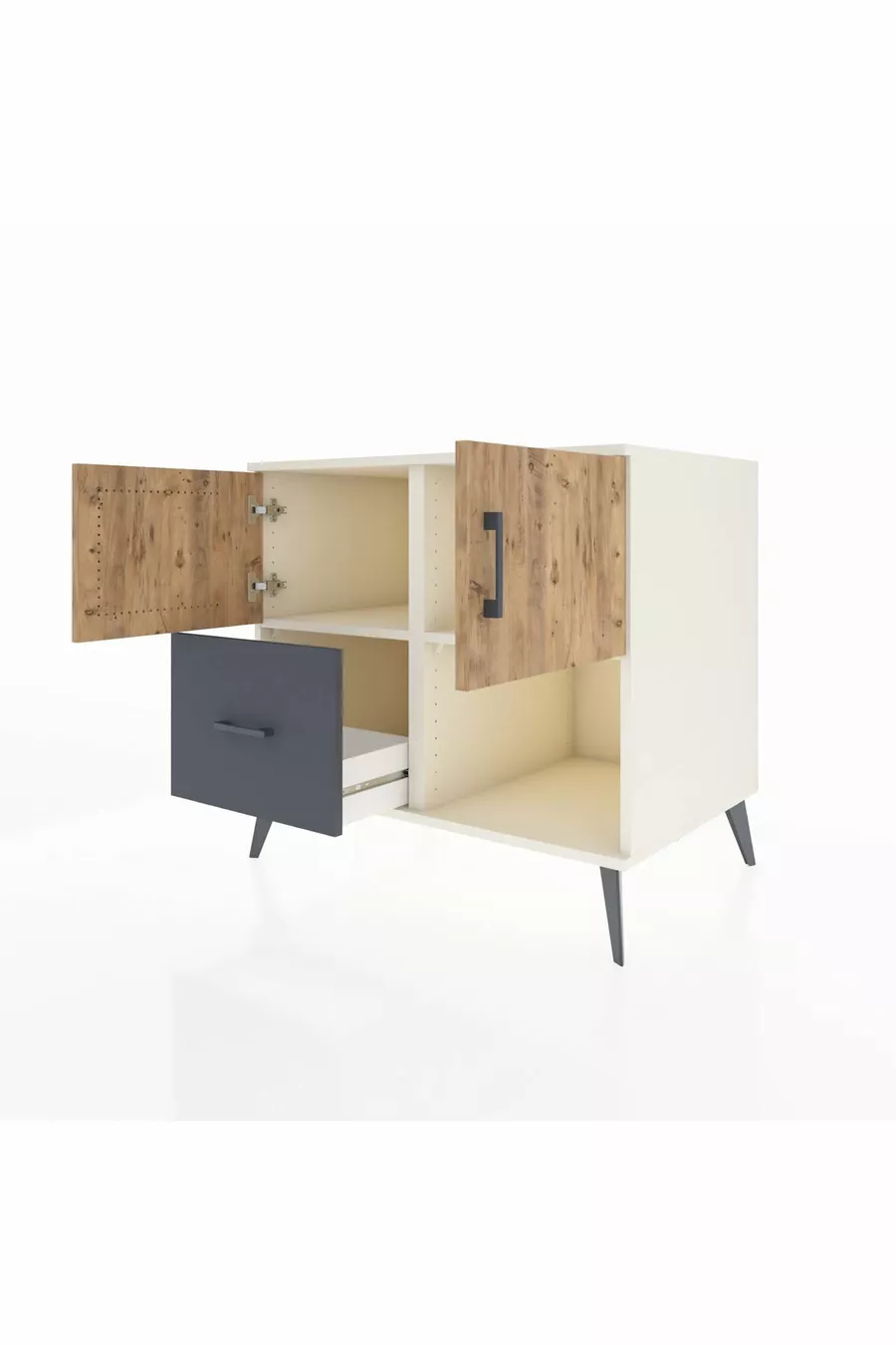 خزانة كرونوس ذات رفين ودرج واحد وغطاءين، لون حجر القمر والصنوبر/أنثراسايت