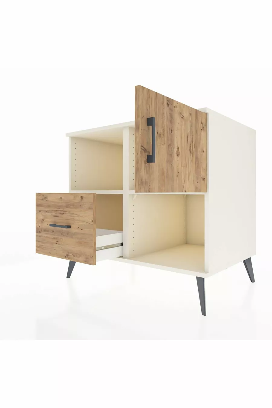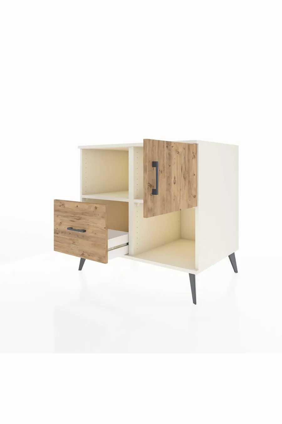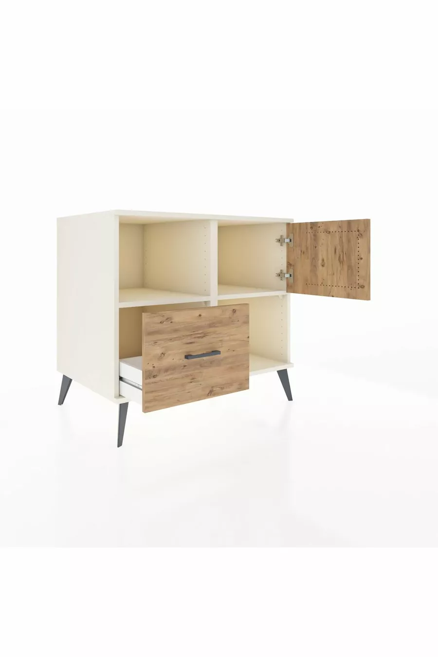 خزانة كرونوس مع رفين، درج واحد، باب واحد، حجر القمر-صنوبر