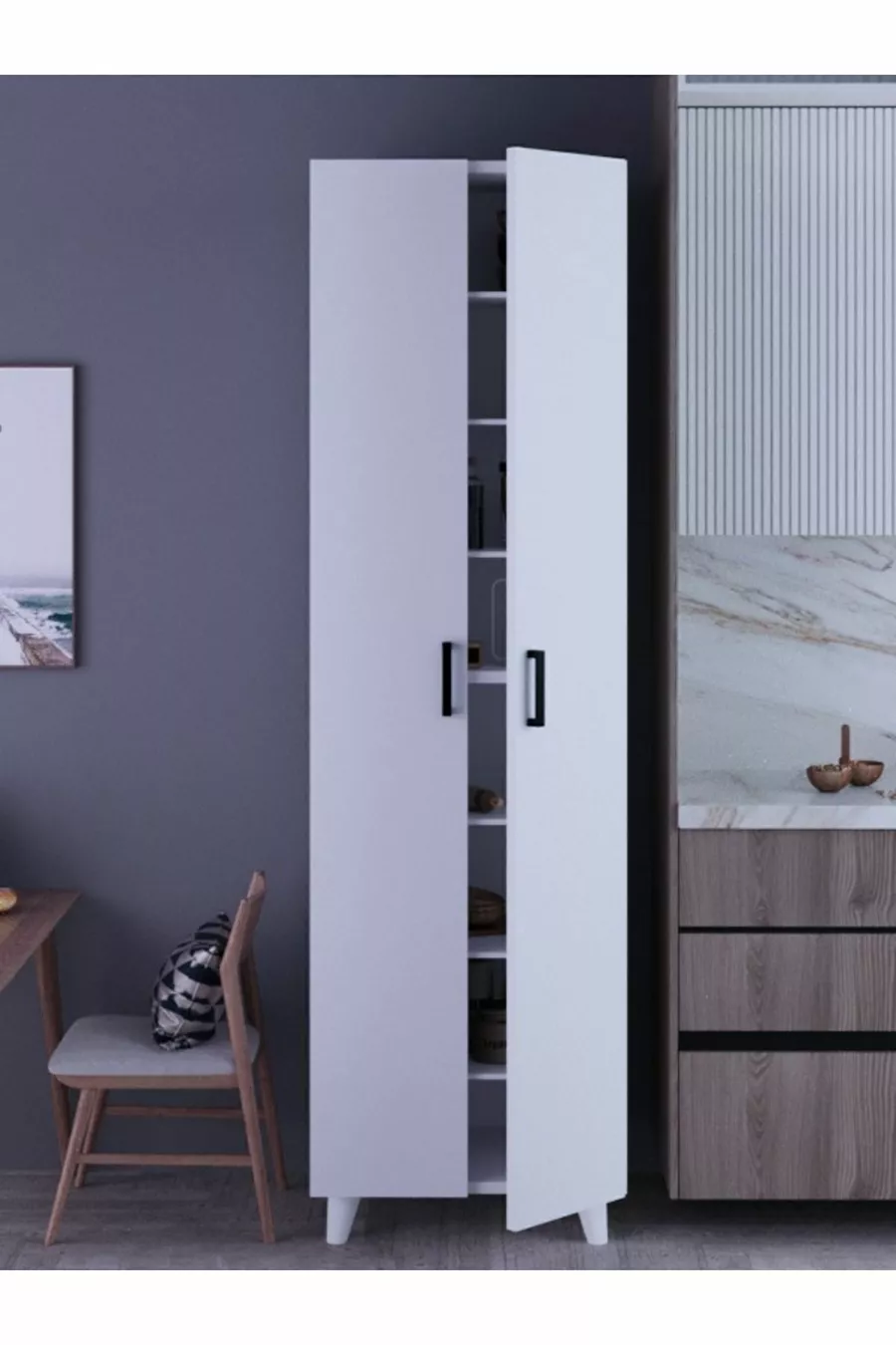 المادة: صندلام اللون: أبيض النموذج: طولي الارتفاع: 175 سم العرض: 49 سم العمق: 32 سم مدة الضمان: سنتان الأسلوب: اسكندنافي الموضوع / الأسلوب: اسكندنافي البلد المنشأ: تركيا الخصائص: مع رف