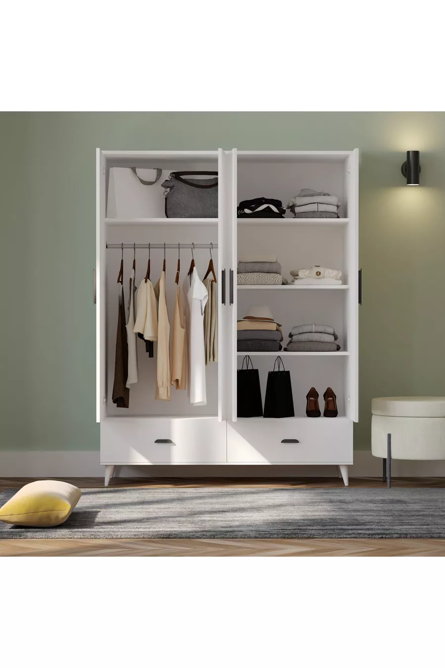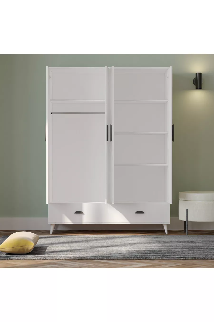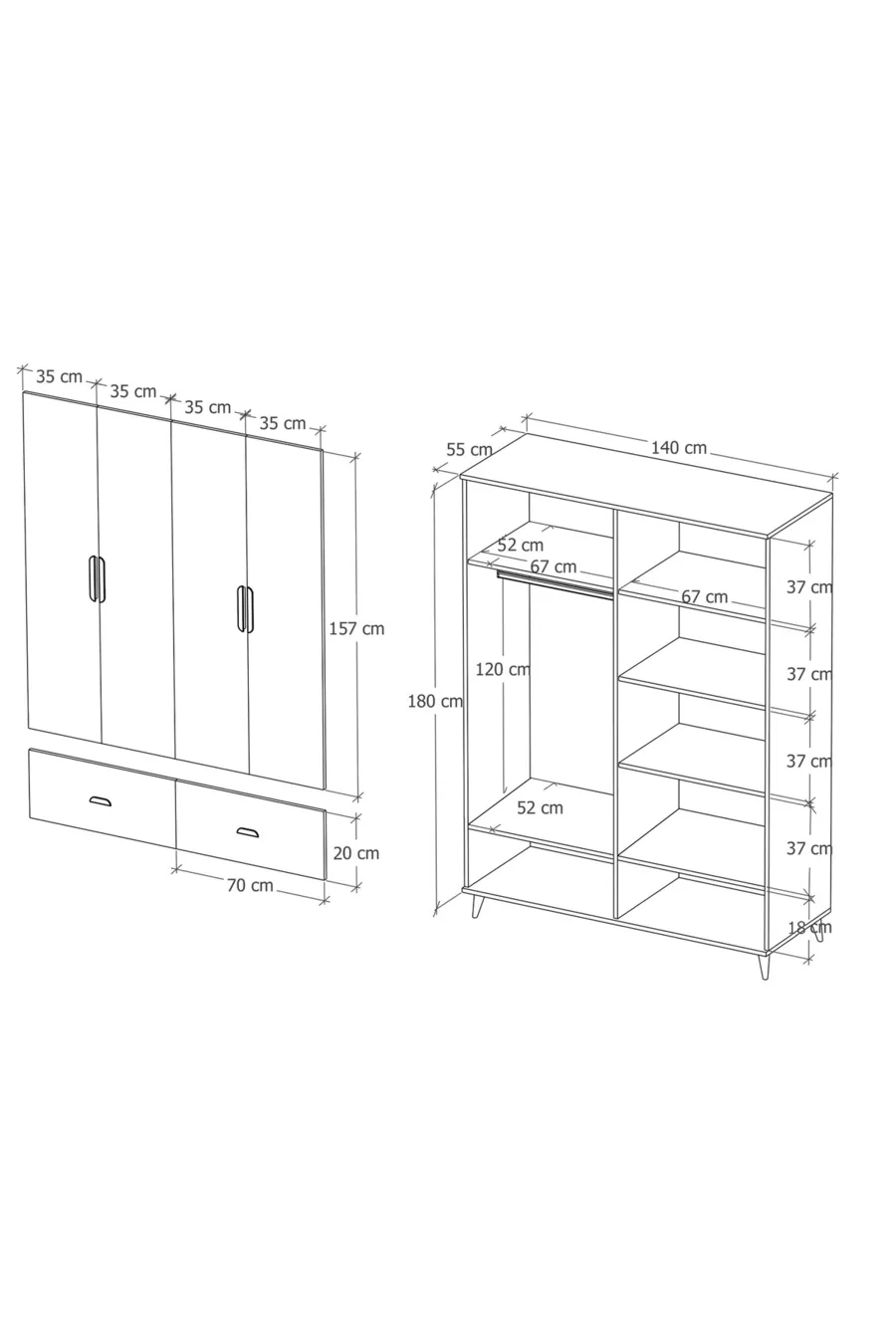الوظيفة: بغطاء اللون: أبيض العرض: 140 سم العمق: 52 سم عدد الأغطية: 4 مادة الهيكل: سونتلام وظيفة المرآة: بدون مرآة مدة الضمان: سنتان النمط: عصري الموضوع / النمط: عصري الخاصية: مع أدراج