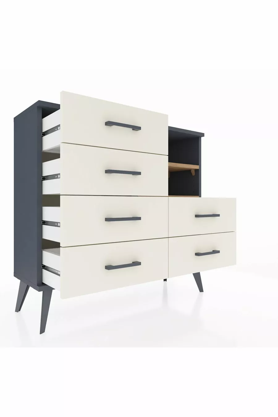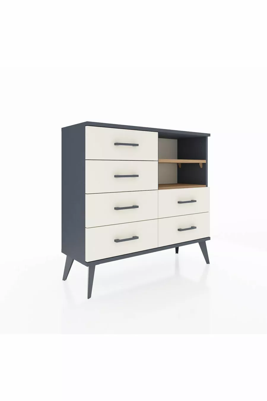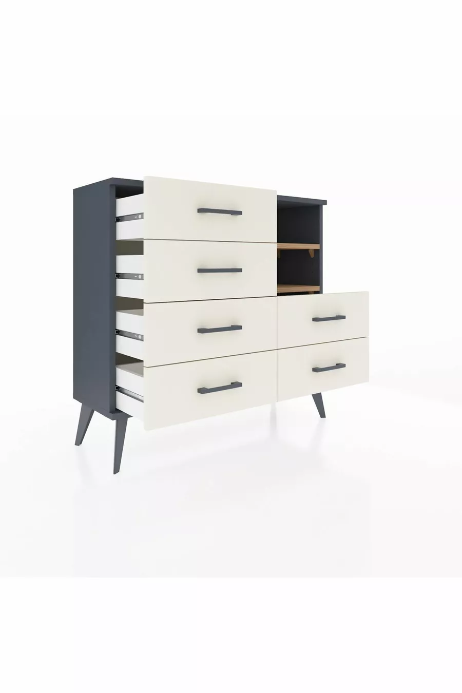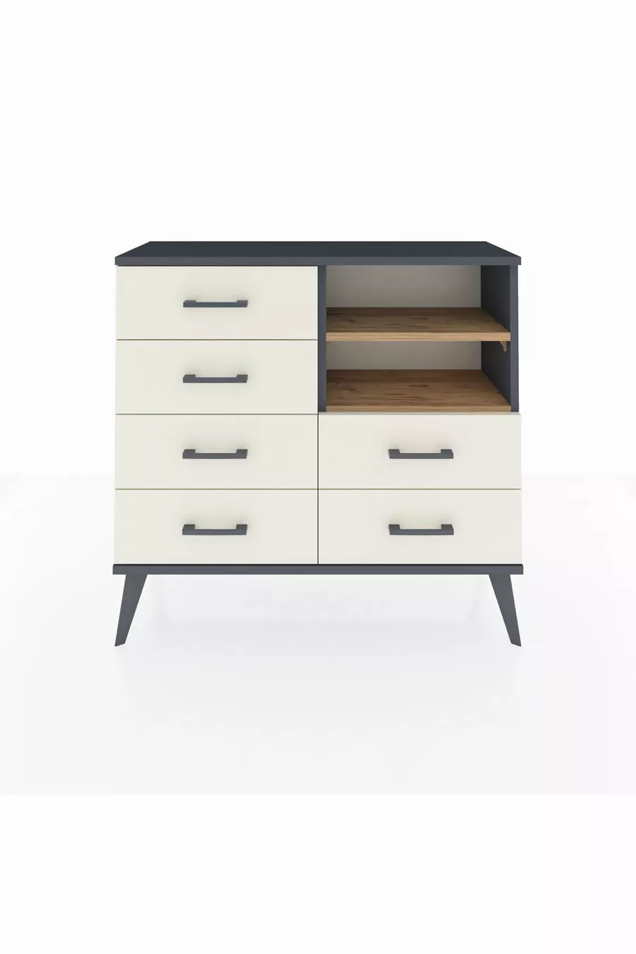 خزانة ملابس أرجس برافينتين و6 أدراج، أنثراسيت-صنوبر/حجر رملي
