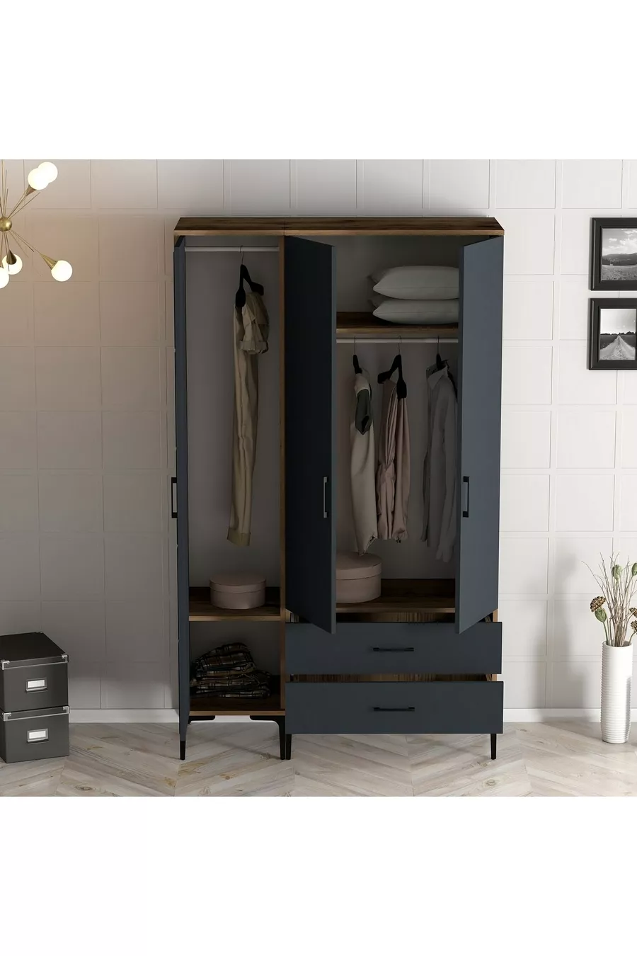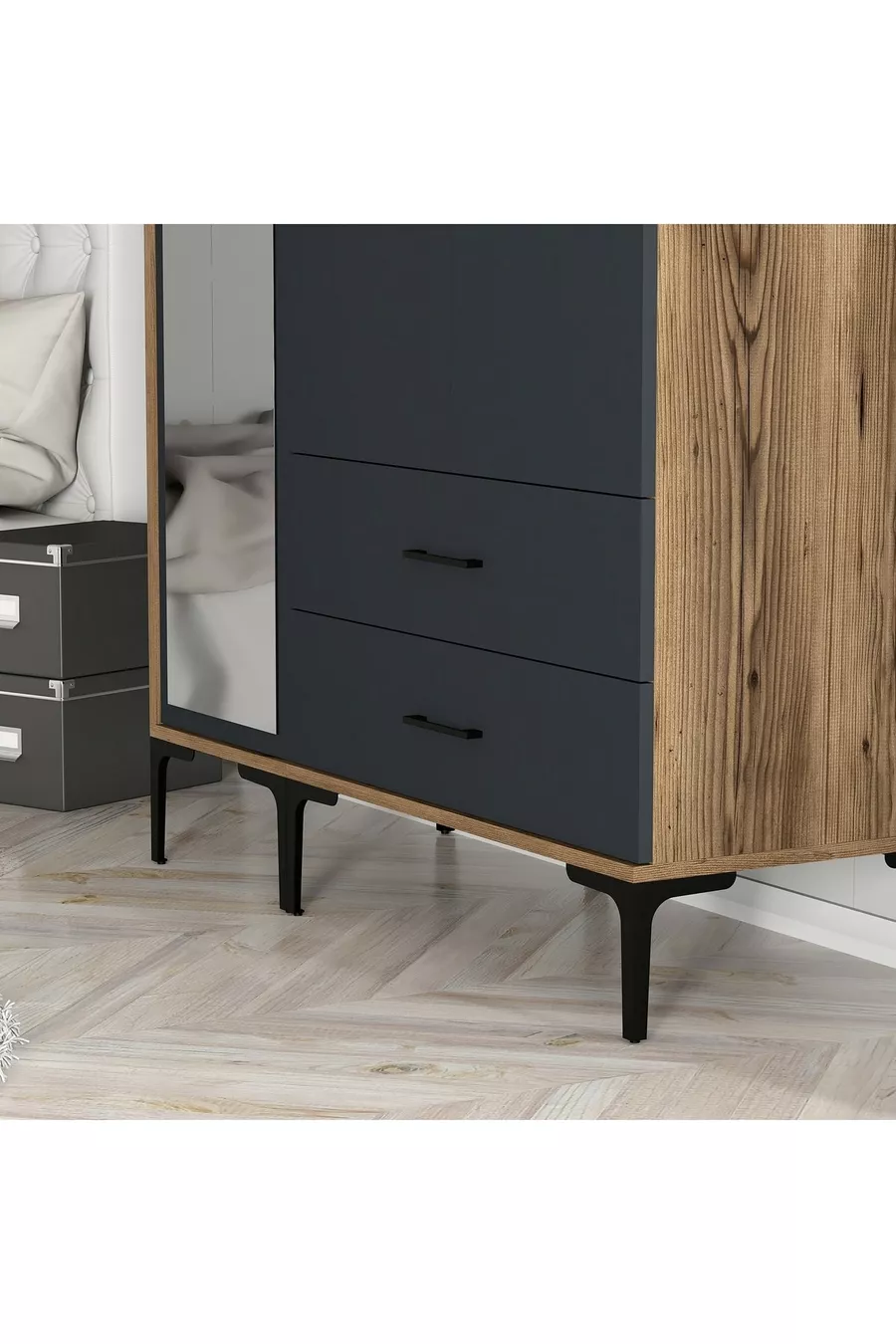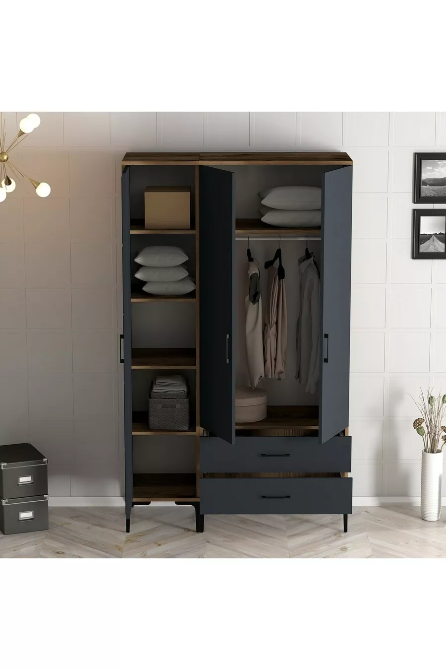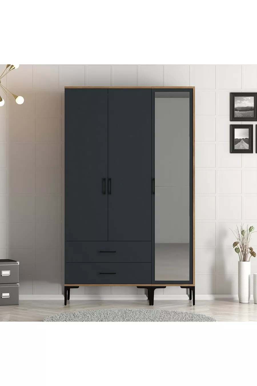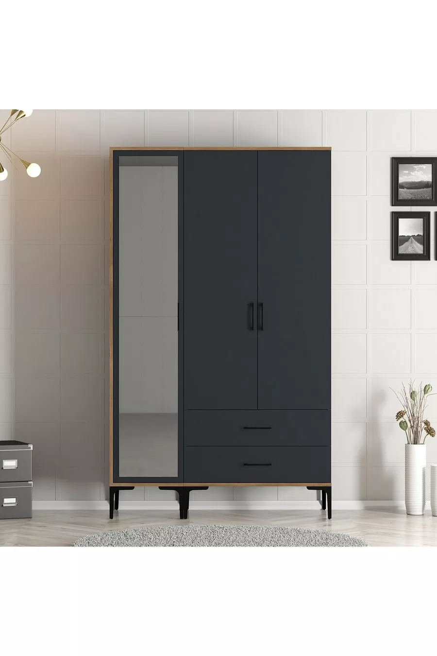 خزانة ملابس رملية بثلاثة أبواب - أنثراسيت