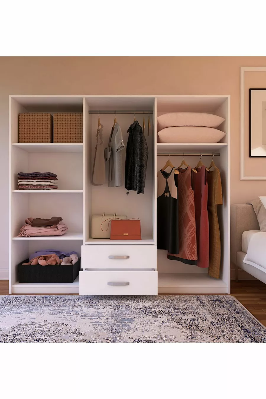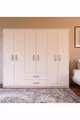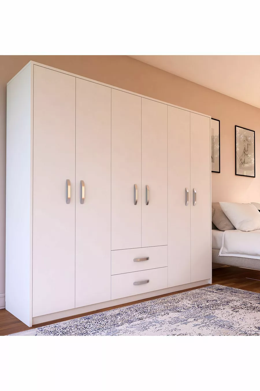 خزانة ملابس بيضاء ديلوكس بستة أبواب ودرجين