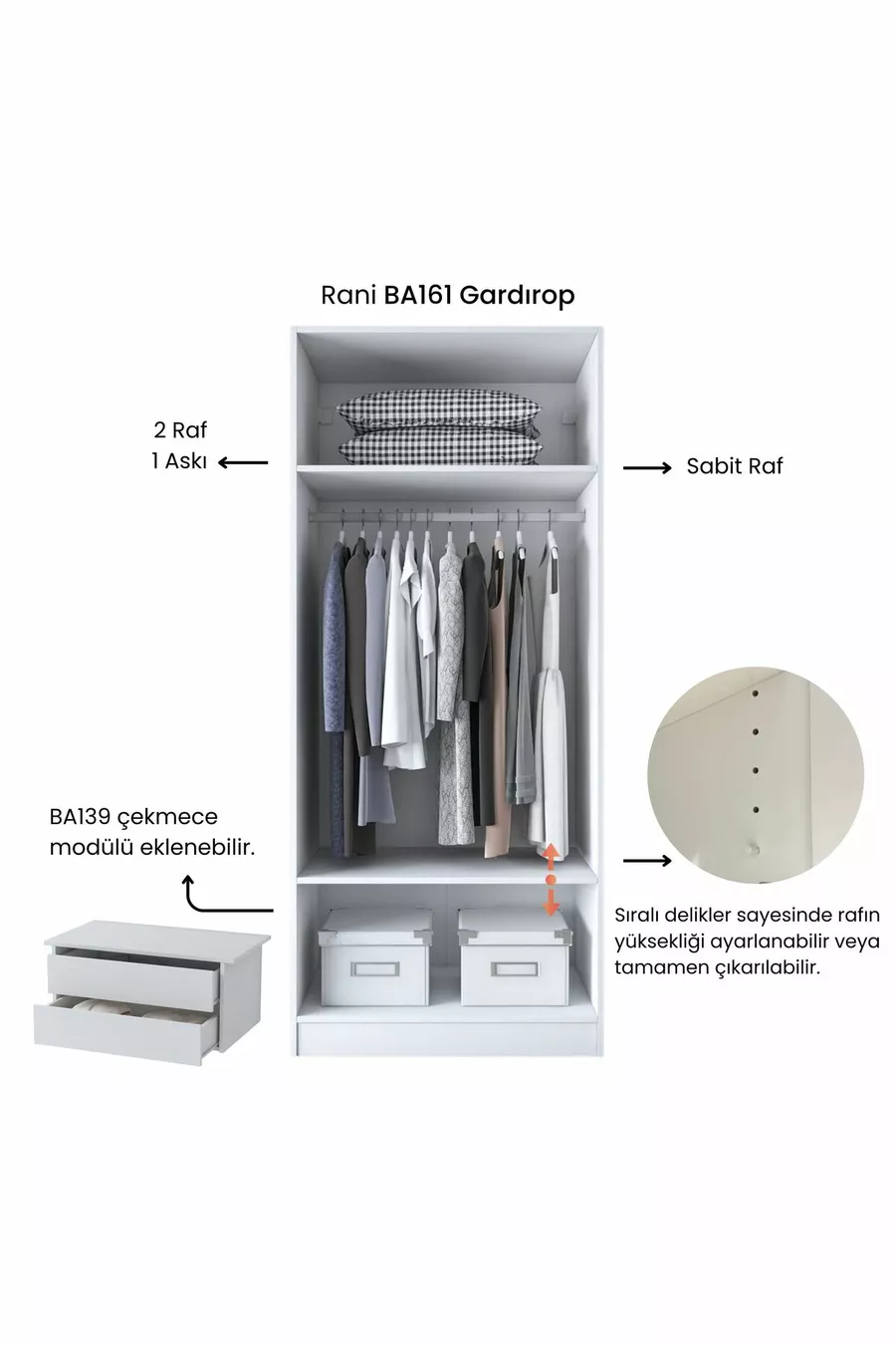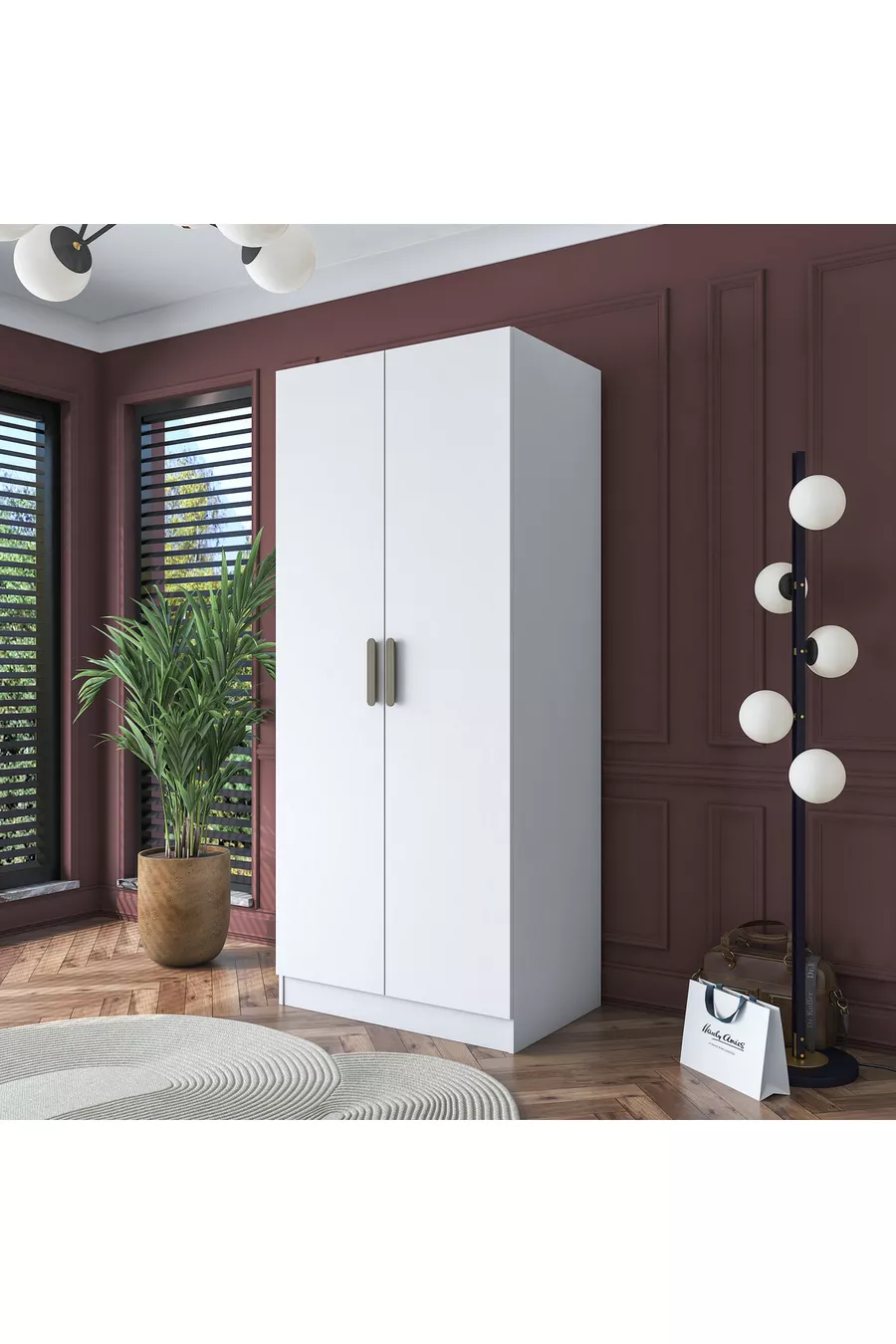 خزانة ملابس راني ببابين ورفين باللون الأبيض