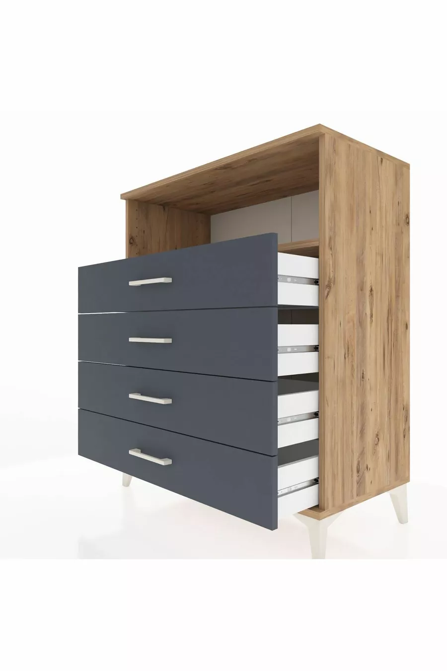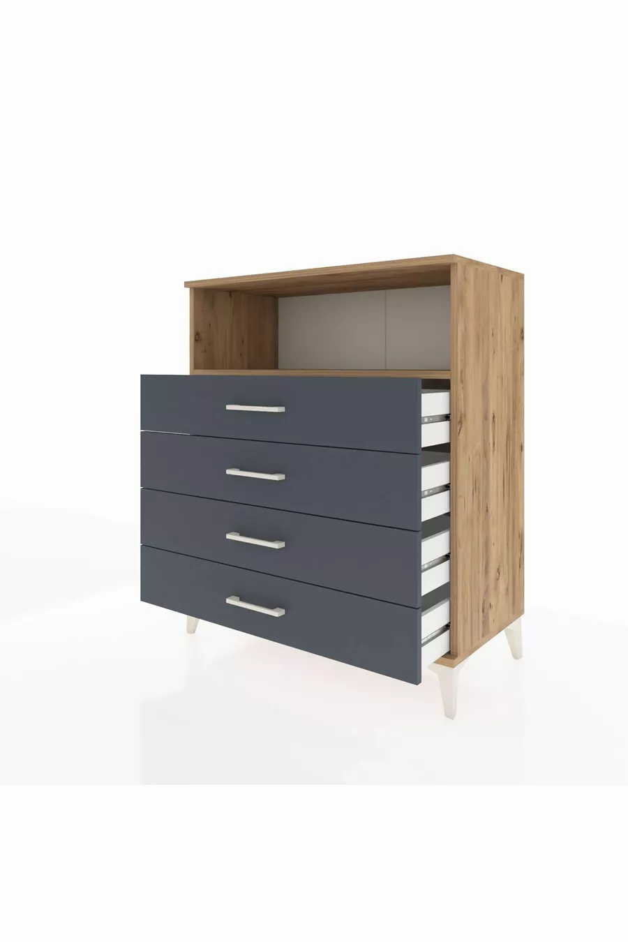 خزانة هابريون ذات رف واحد وأربعة أدراج - صنوبر/أنثراسيت