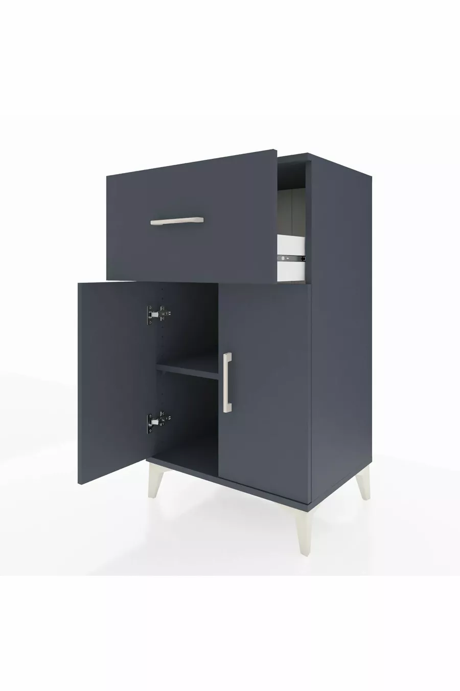 خزانة هايبرون جانبية برف واحد ودرج واحد وبوابتين، أنثراسيت-أنثراسيت