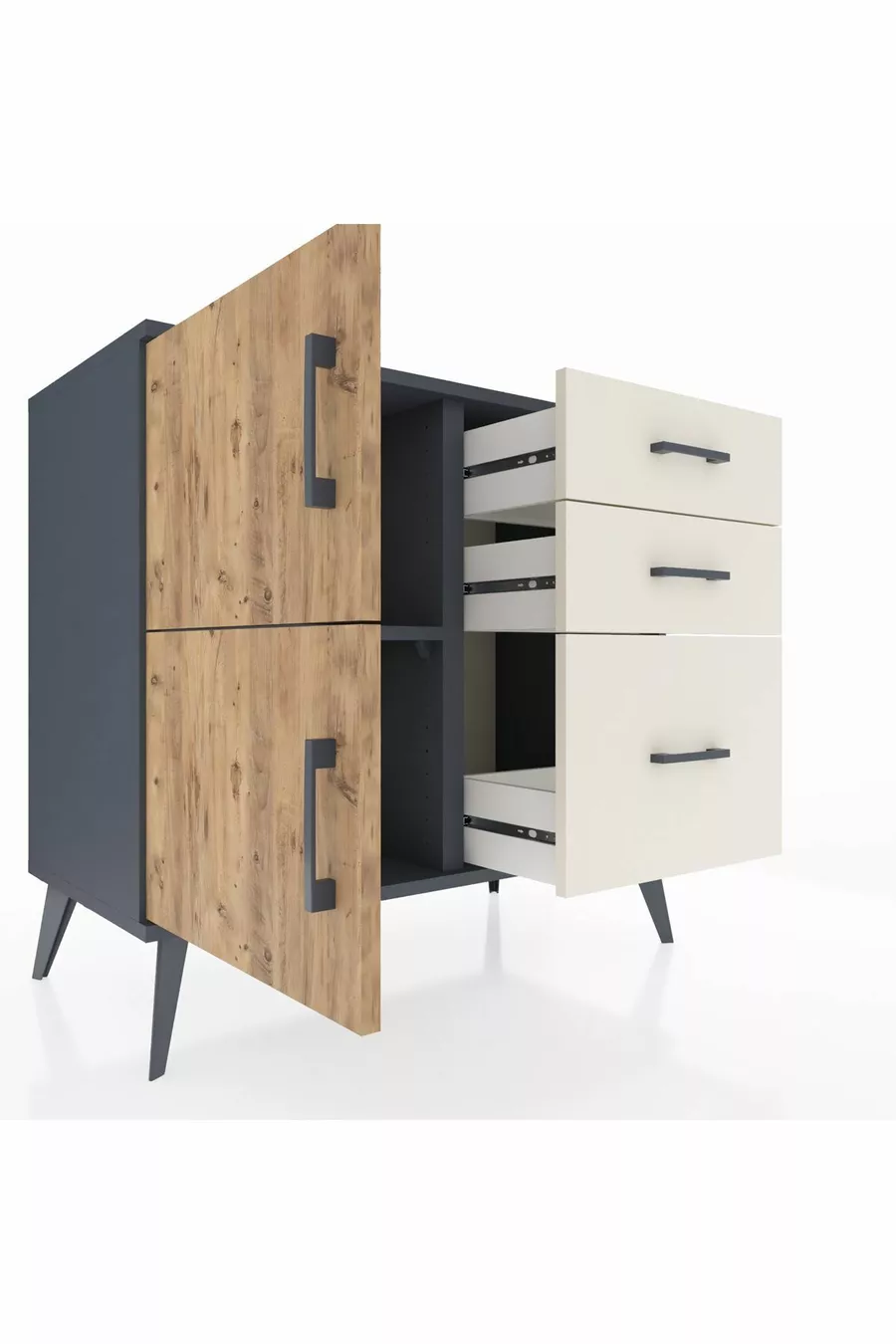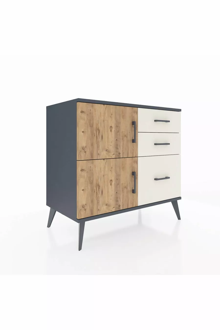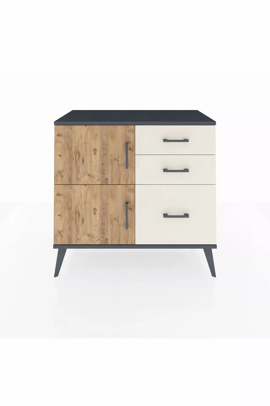 خزانة هايبرون براف واحد و3 أدراج وغطائين، رمادي فحمي-صنوبر/حجر المزهر