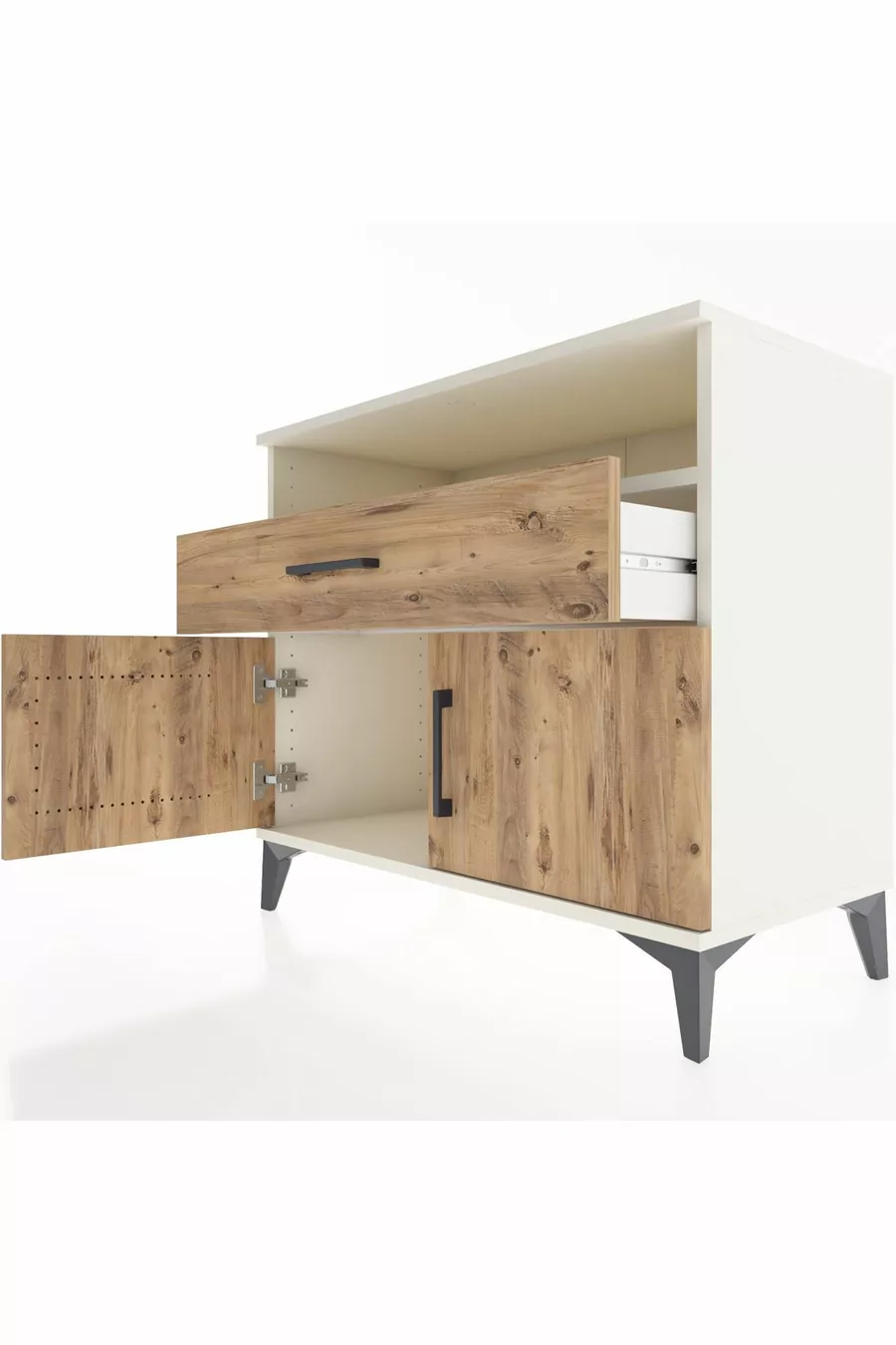 خزانة هايبرون بروفيل برافعة واحدة ودرج واحد وغطائين، لون حجر القمر والصنوبر