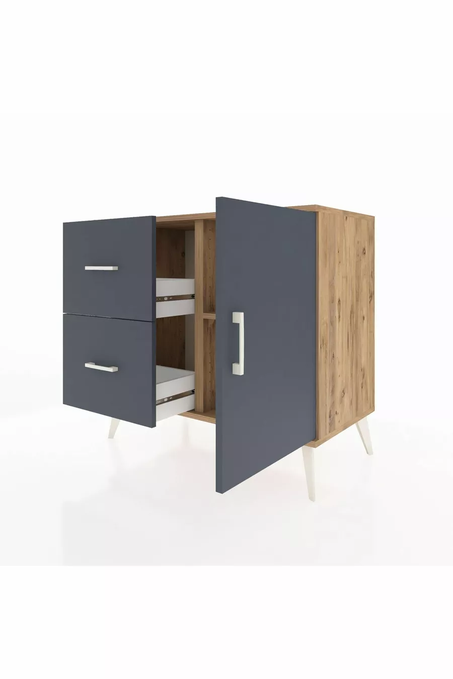 خزانة هايبرون بدرج واحد ورف واحد وباب واحد - خشب الصنوبر والأنثراسيت