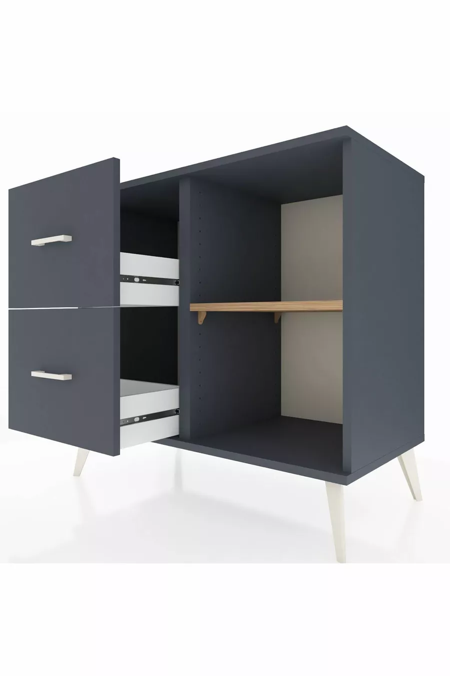 خزانة هايبرون بروفيل رف واحد ودرجان، أنثراسايت-صنوبر/أنثراسايت