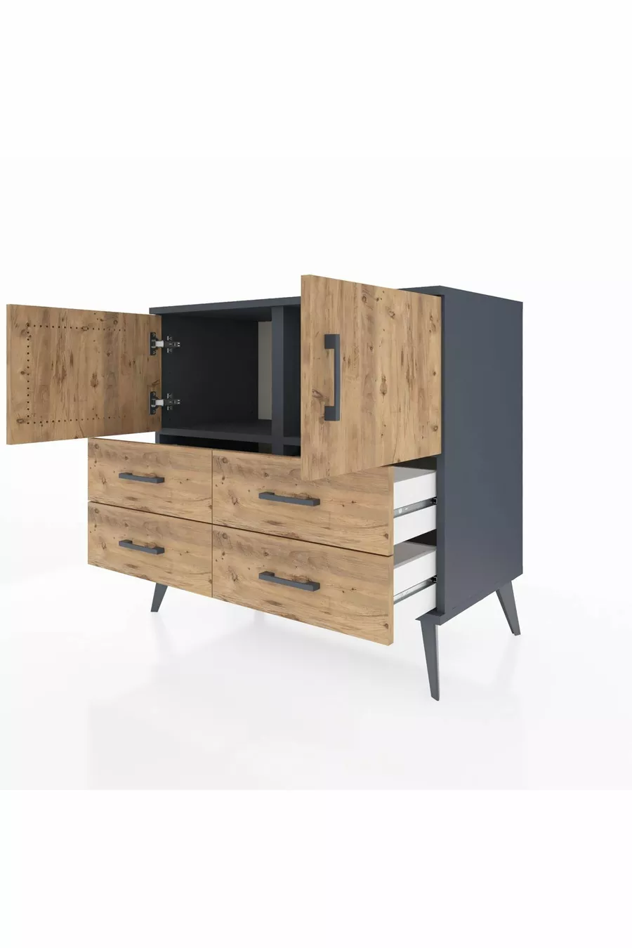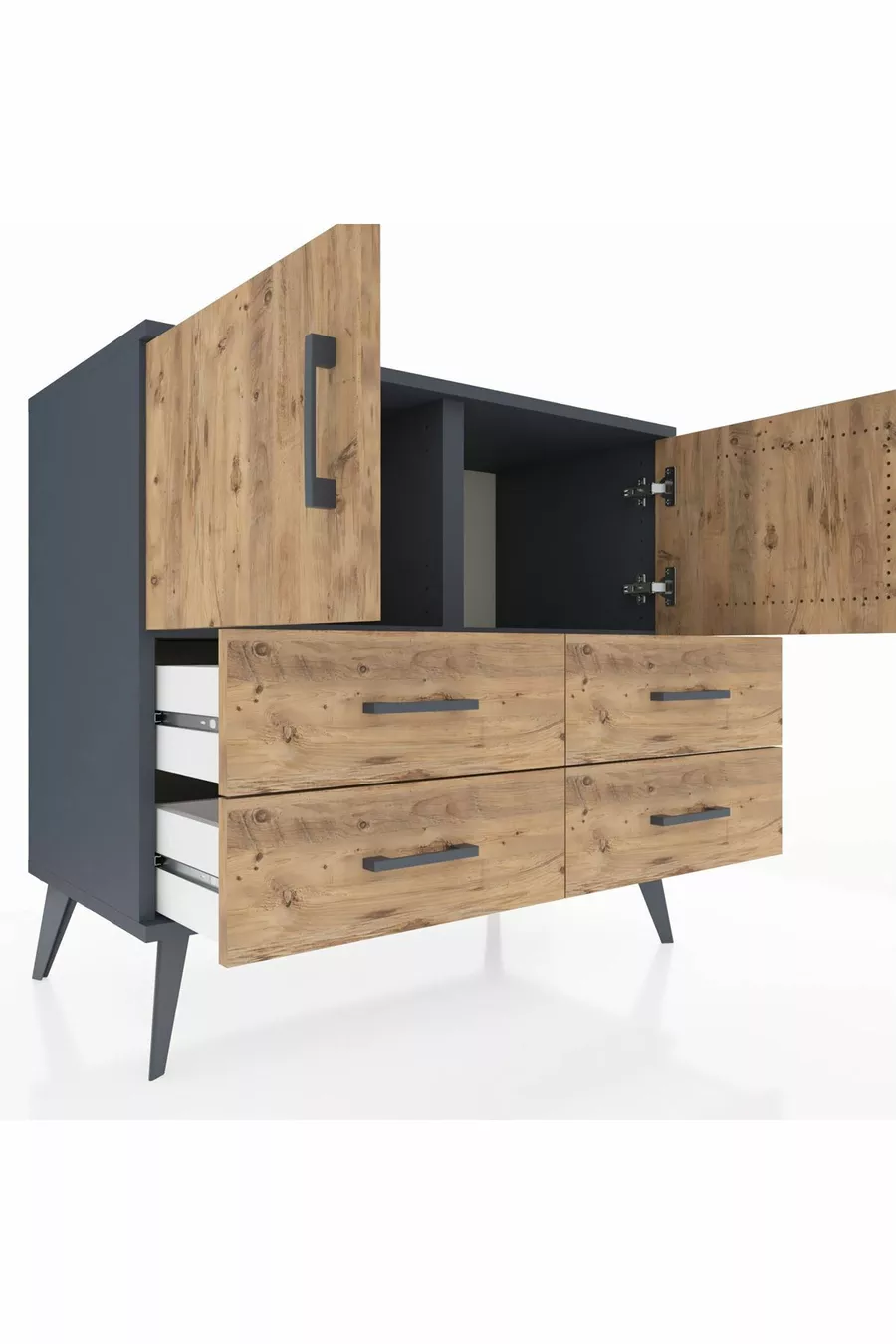 خزانة هايبريون ذات رفين، 4 أدراج، بابان، أنثراسيت-صنوبر