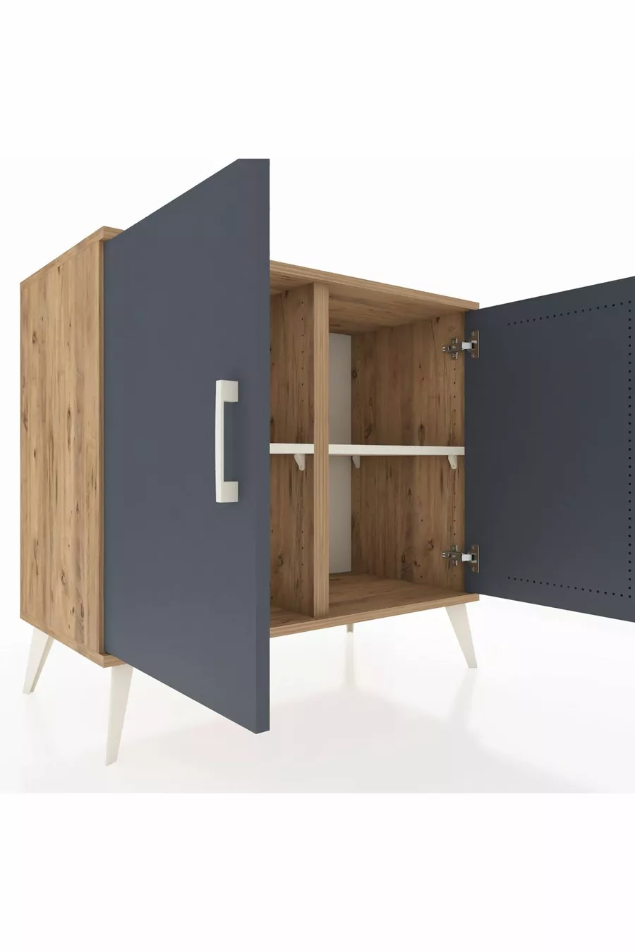خزانة هايبريون 2 رف 2 باب صنوبر-أنثراسيت/حجر رملي