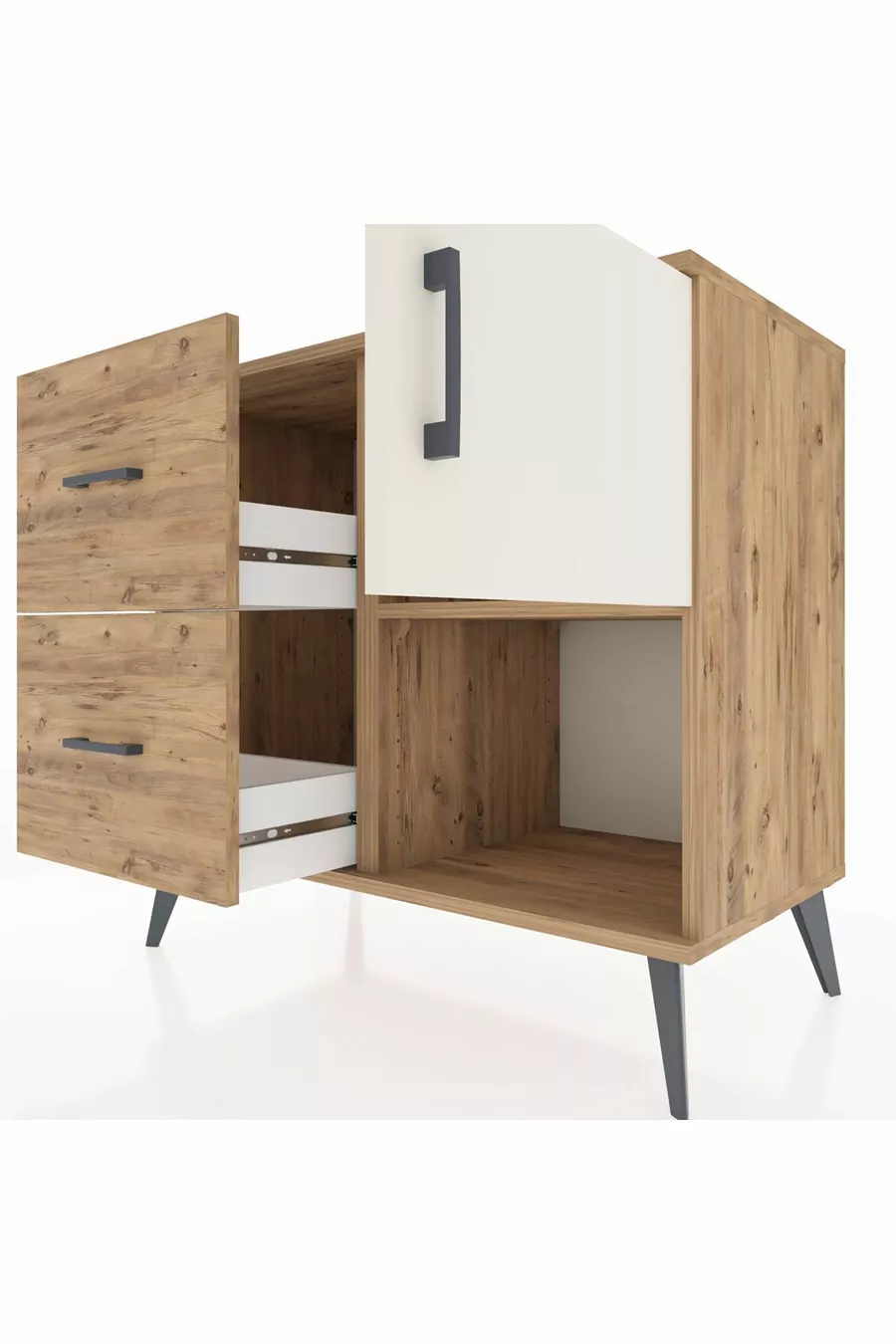 خزانة هايبريون رف واحد، درجين، باب واحد، خشب الصنوبر / صنوبر