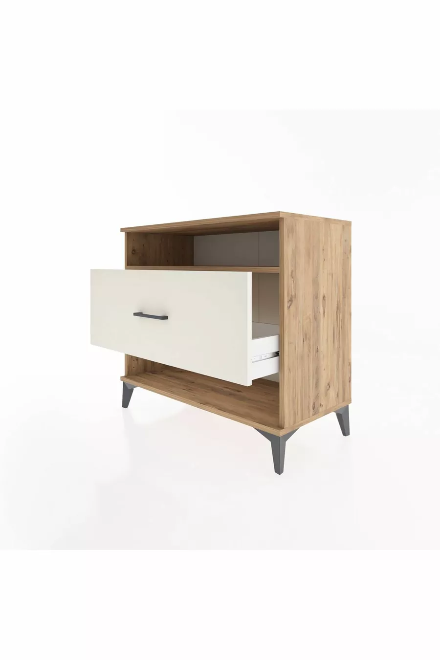 خزانة هايبريون بدرج واحد ورف واحد من خشب الصنوبر وحجر الصوان
