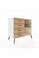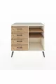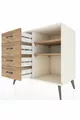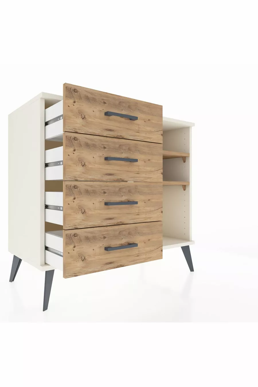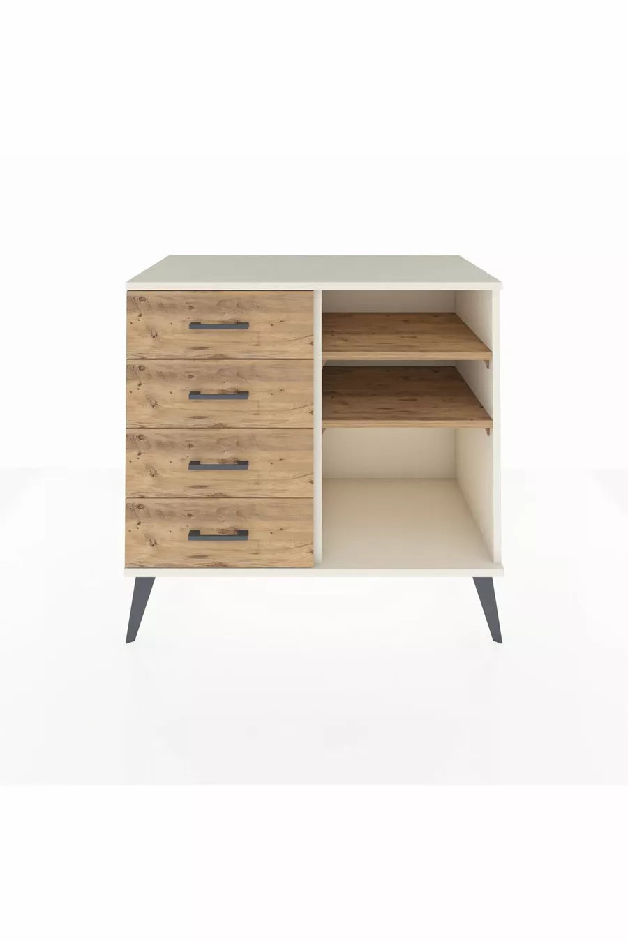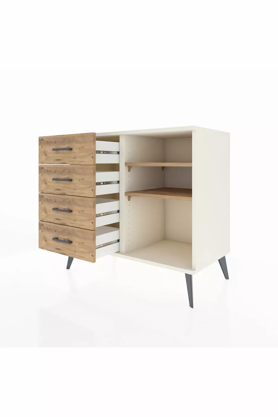 خزانة هايبريون مع رفين وأربعة أدراج، لون حجر القمر والصنوبر