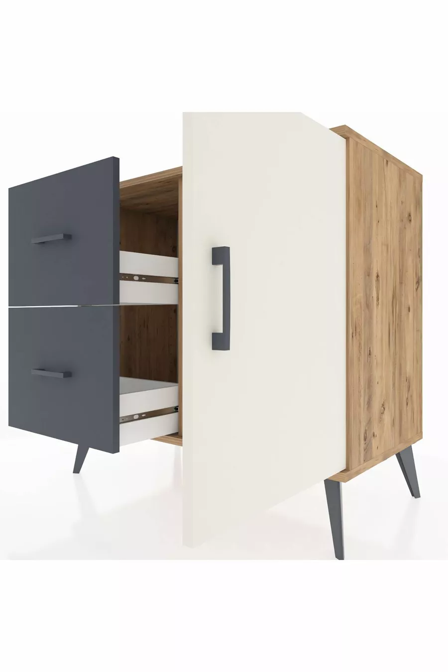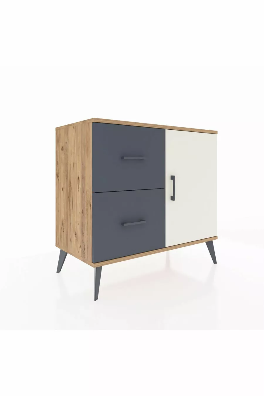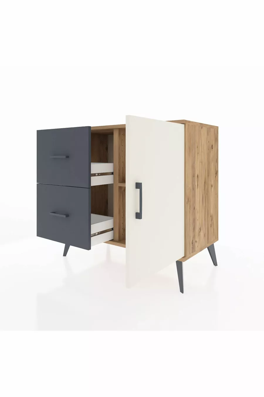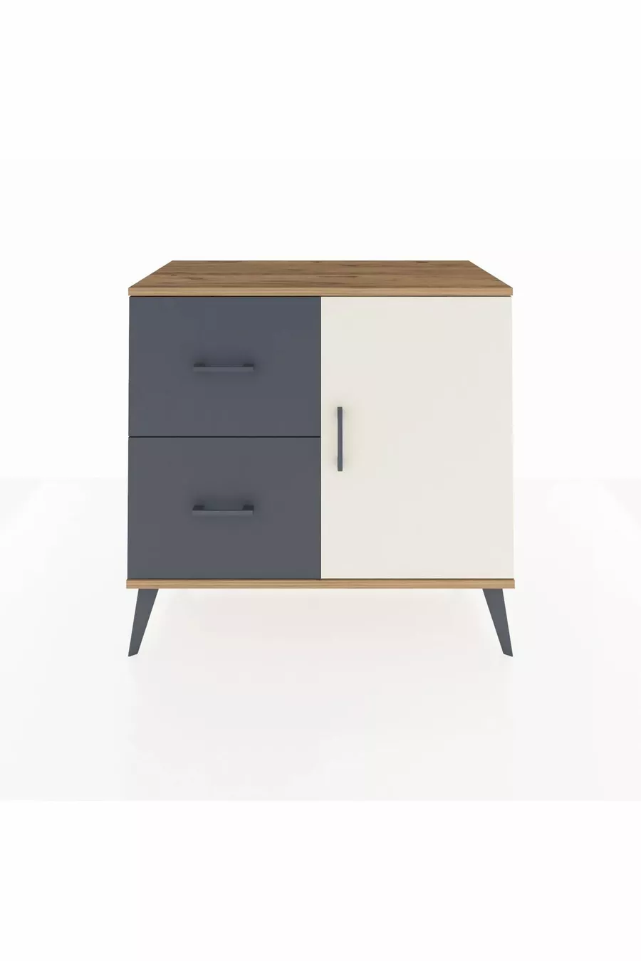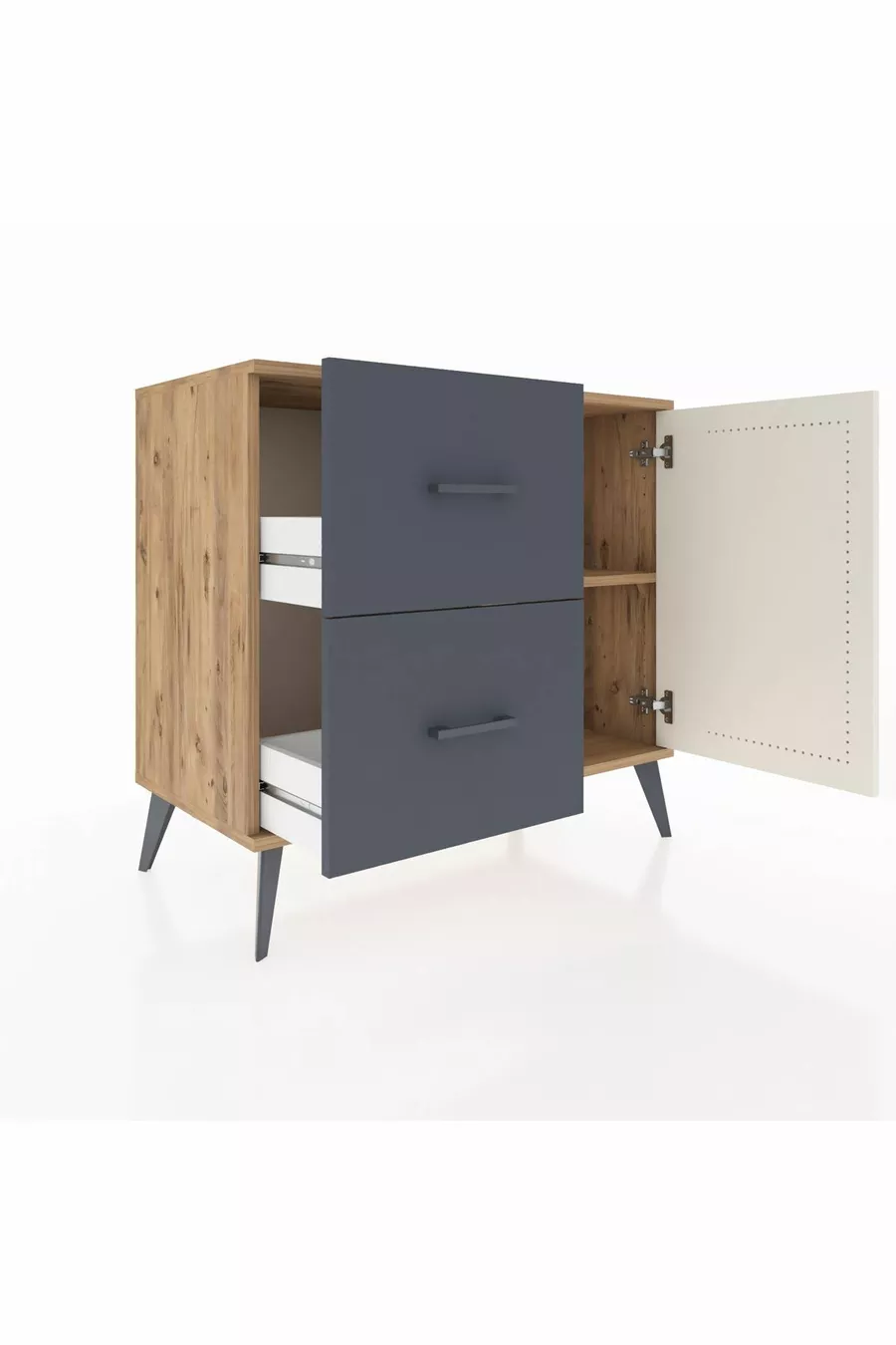 خزانة هايبيريون ذات رف واحد ودرجين وباب واحد، خشب الصنوبر - حجر آهاتي/أنثراسيت