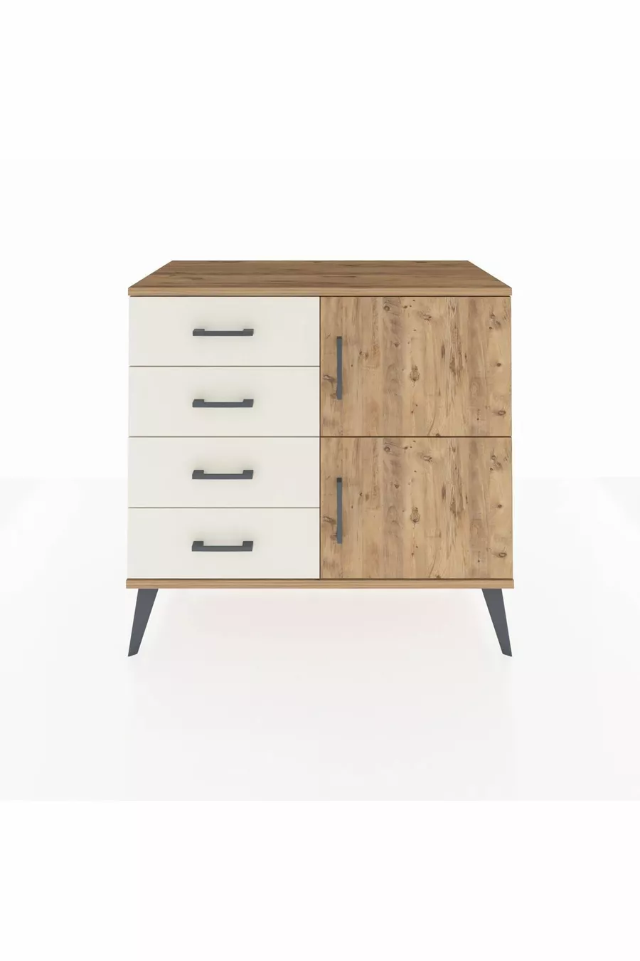 خزانة هايبيريون ذات رف واحد و4 أدراج و2 أبواب، صنوبر-صنوبر/حجر اليشم