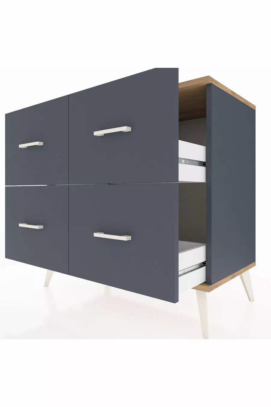 خزانة هوبريون بأربعة أدراج أنثراسيت-صنوبر/أنثراسيت