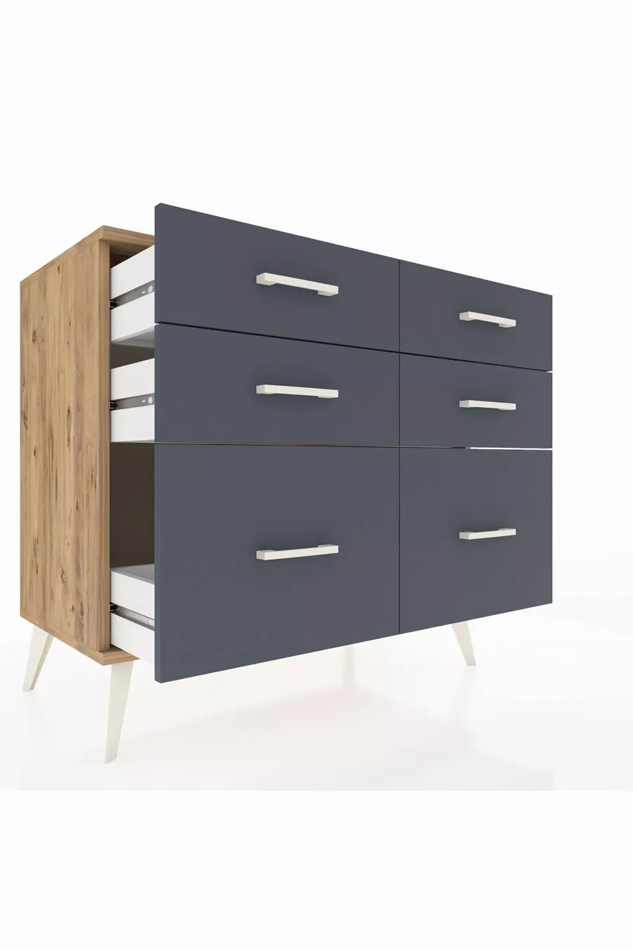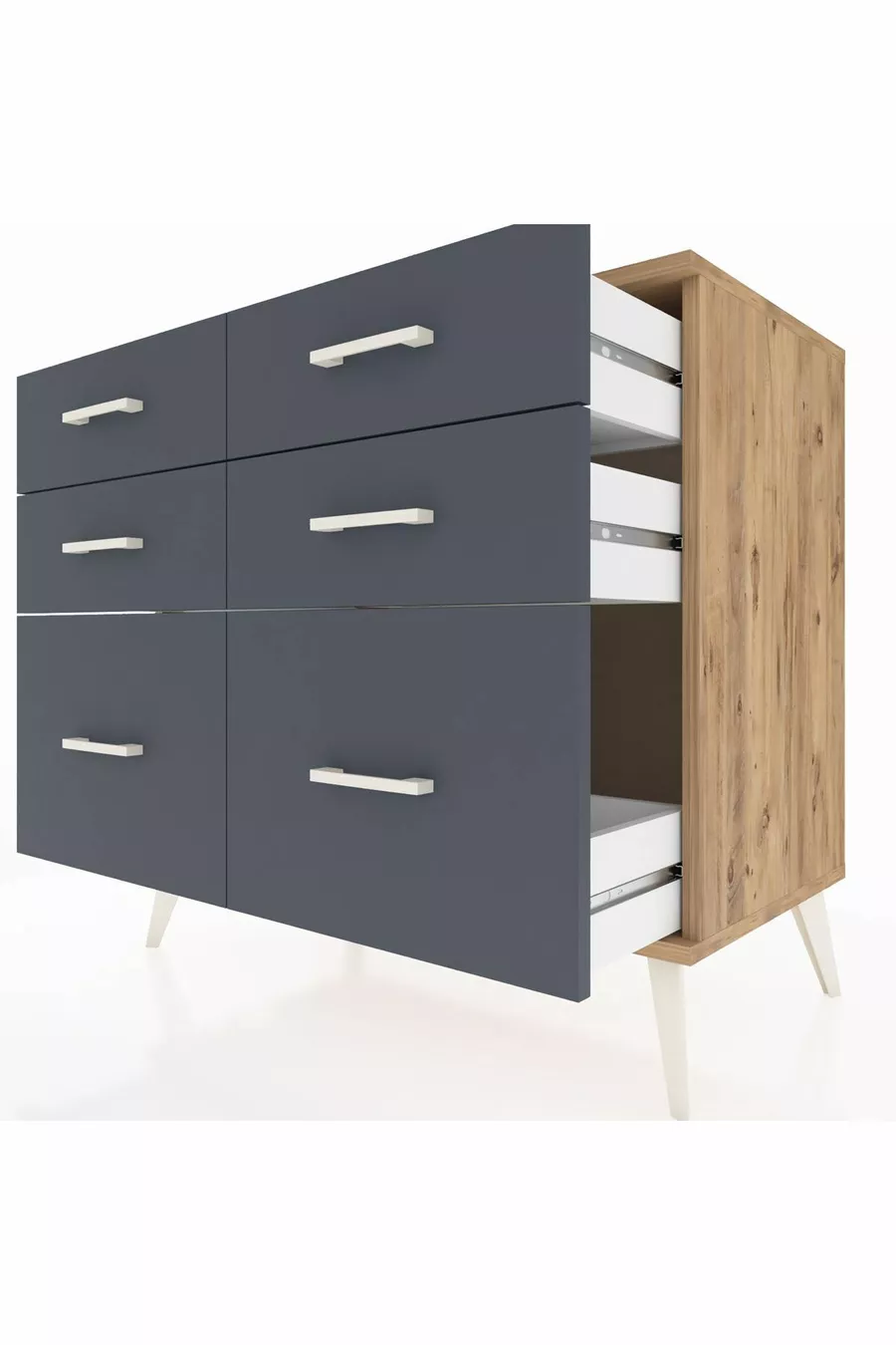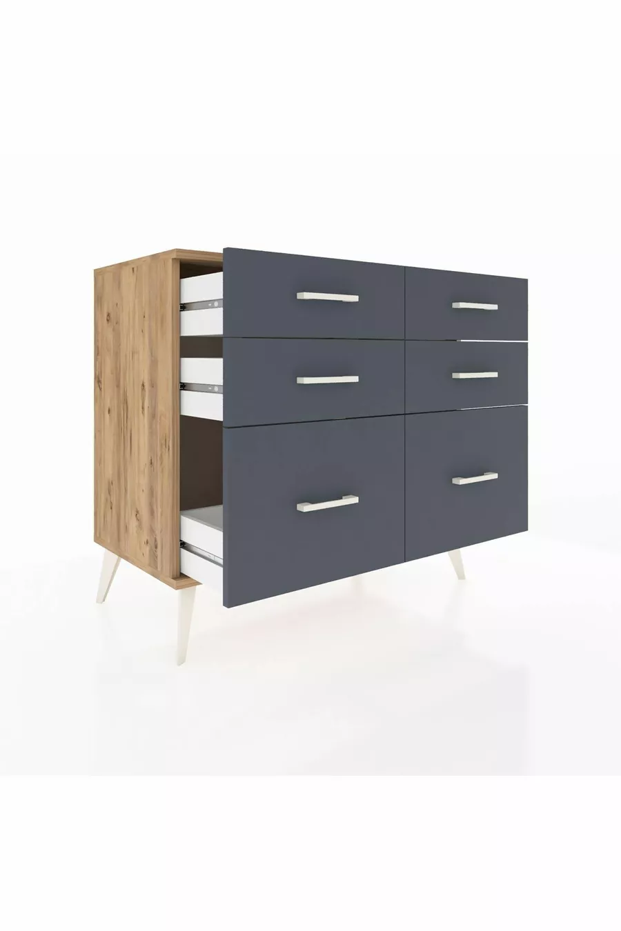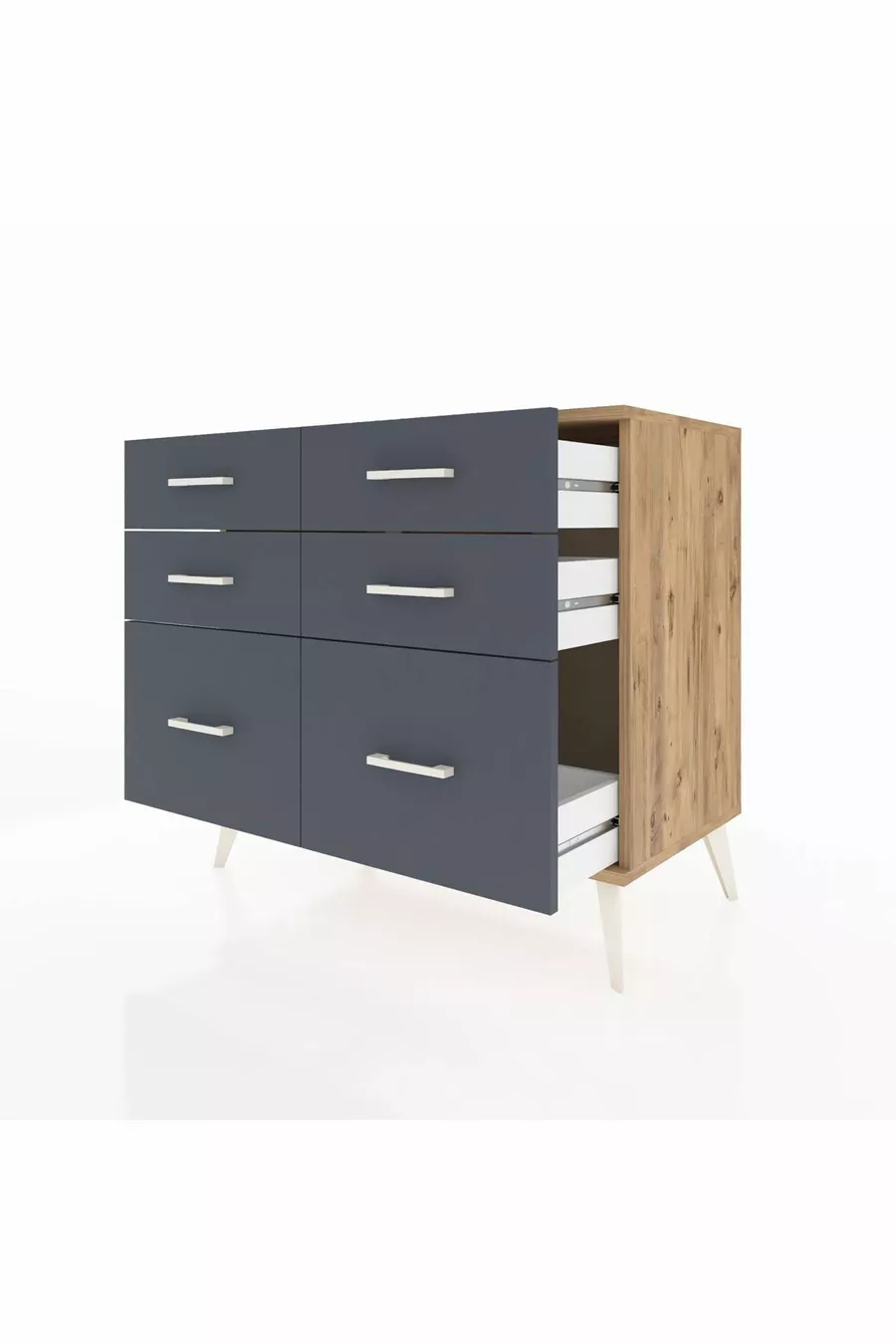خزانة هوبريون بستة أدراج خشب الصنوبر/أنثراسيت