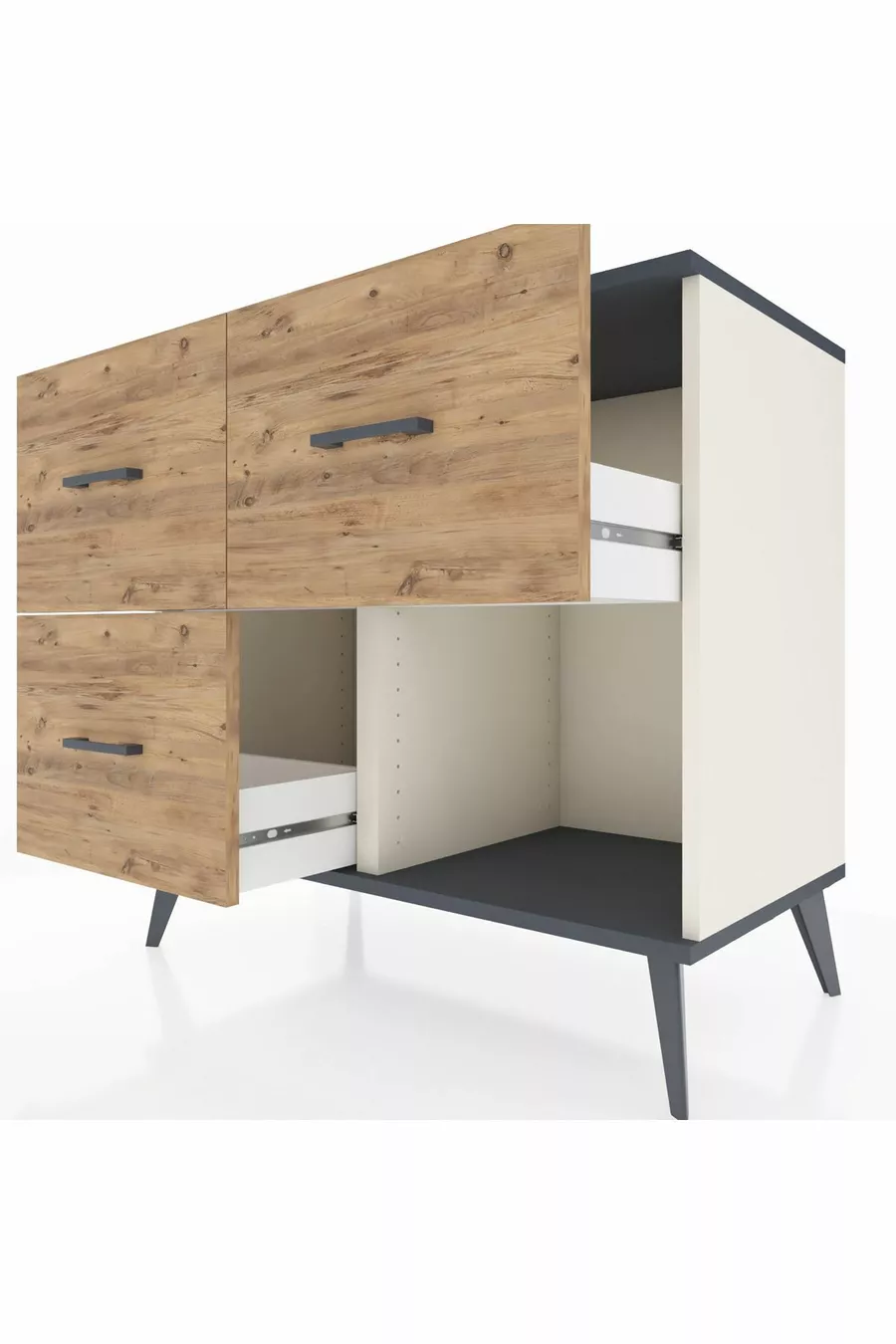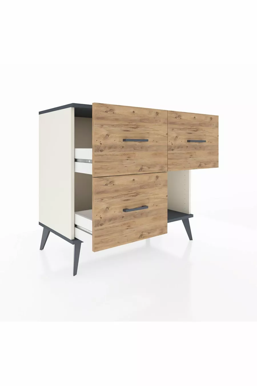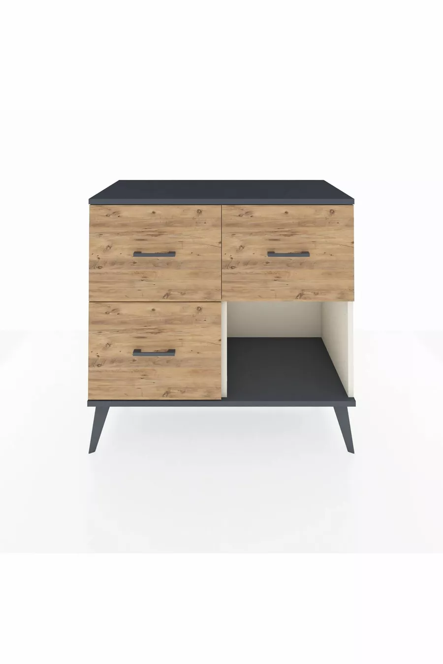 خزانة هوبريون بثلاثة أدراج، حجر القمر - أنثراسيت/صنوبر