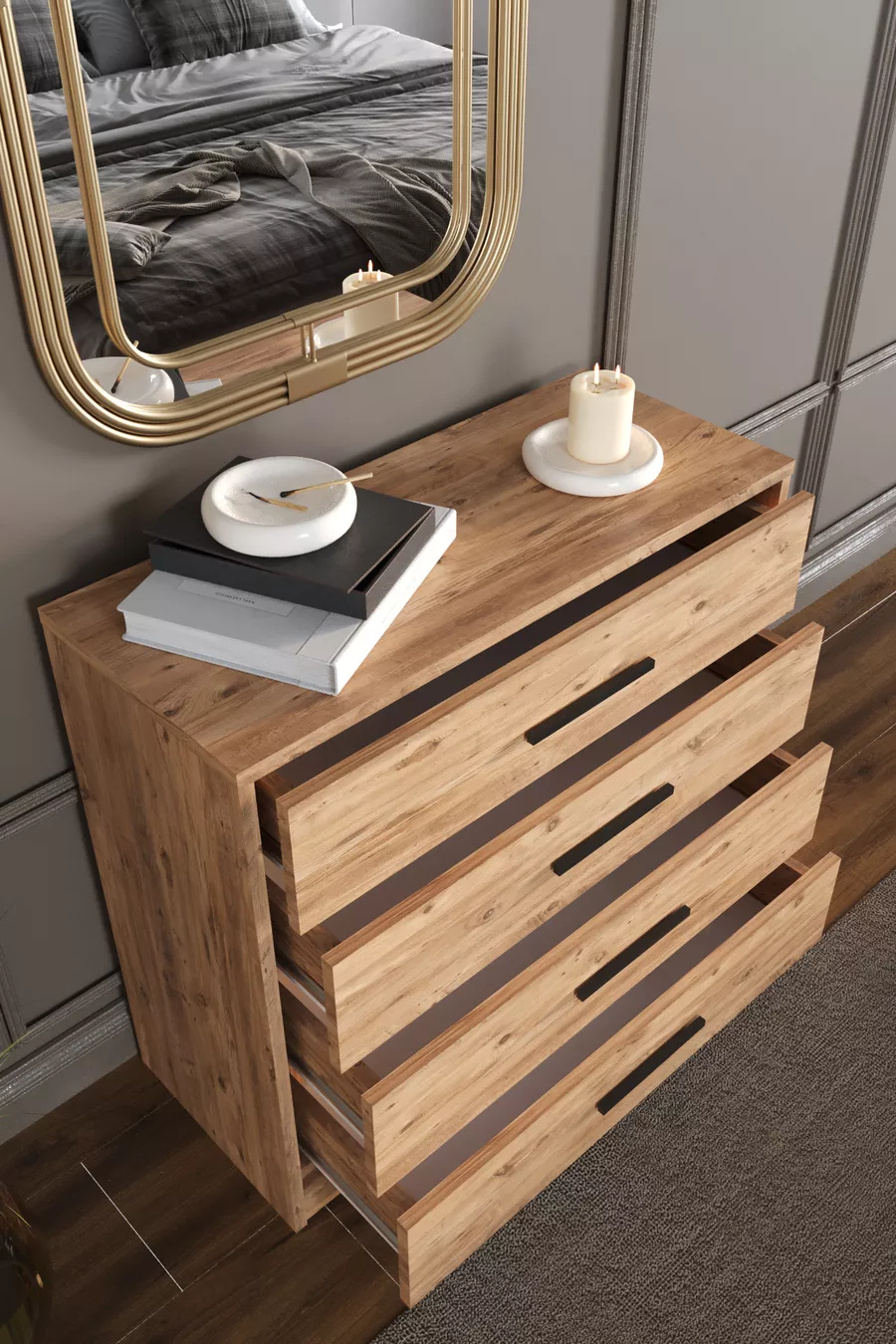 اللون: بني مدة الضمان: سنتان المادة: سونتالام العرض: 86 سم العمق: 38 سم عدد الأدراج: 4 ميزة المنتج: يحتوي على أدراج الطراز: عصري الموضوع / الطراز: عصري البلد المنشأ: تركيا الخاصية: يحتوي على أدراج