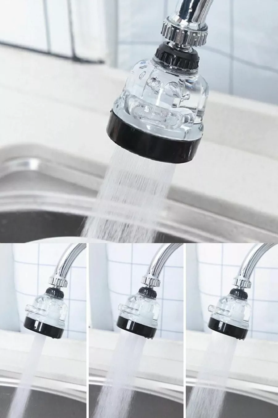 رأس حنفية شفاف اقتصادي للعب، صنبور حوض عالي الضغط، طرف بطارية لولبية، رأس حنفية بثلاث وظائف