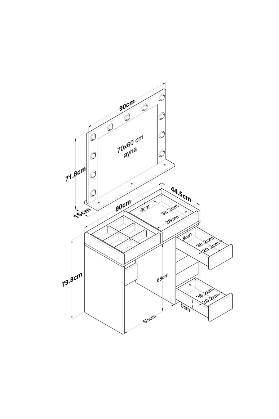 المواد: سنتالام الخاصية: قابل للتثبيت على الجدار اللون: أبيض مدة الضمان: 6 سنوات الارتفاع: 80 سم العرض: 90 سم وظيفة المرآة: مزودة بمرآة العمق: 45 سم الأسلوب: حديث الموضوع / الأسلوب: حديث المنشأ: تركيا