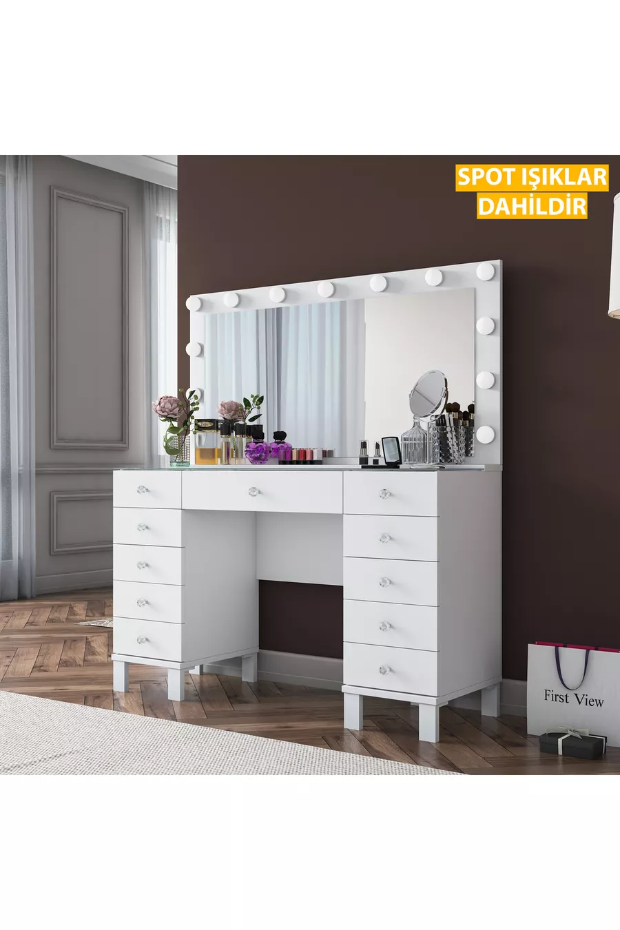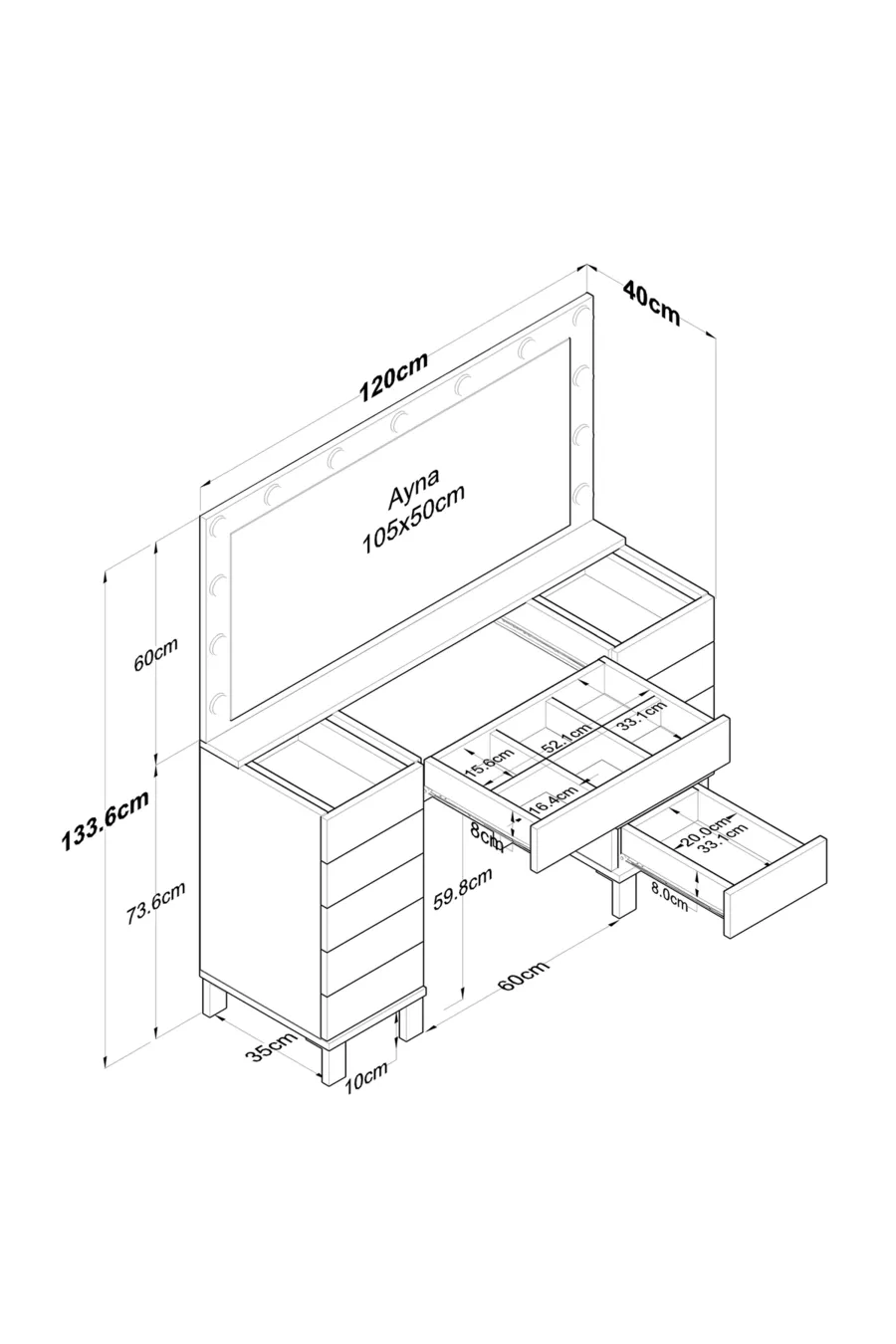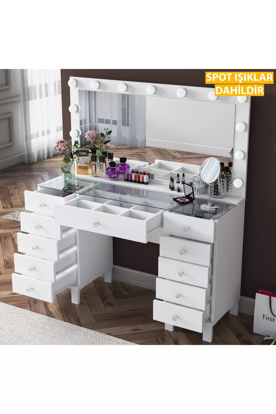 المادة: صنتالام الخاصية: ذو أرجل اللون: أبيض مدة الضمان: سنتان الارتفاع: 133 سم العرض: 120 سم وظيفة المرآة: مع مرآة العمق: 40 سم الطراز: حديث المنشأ: تركيا