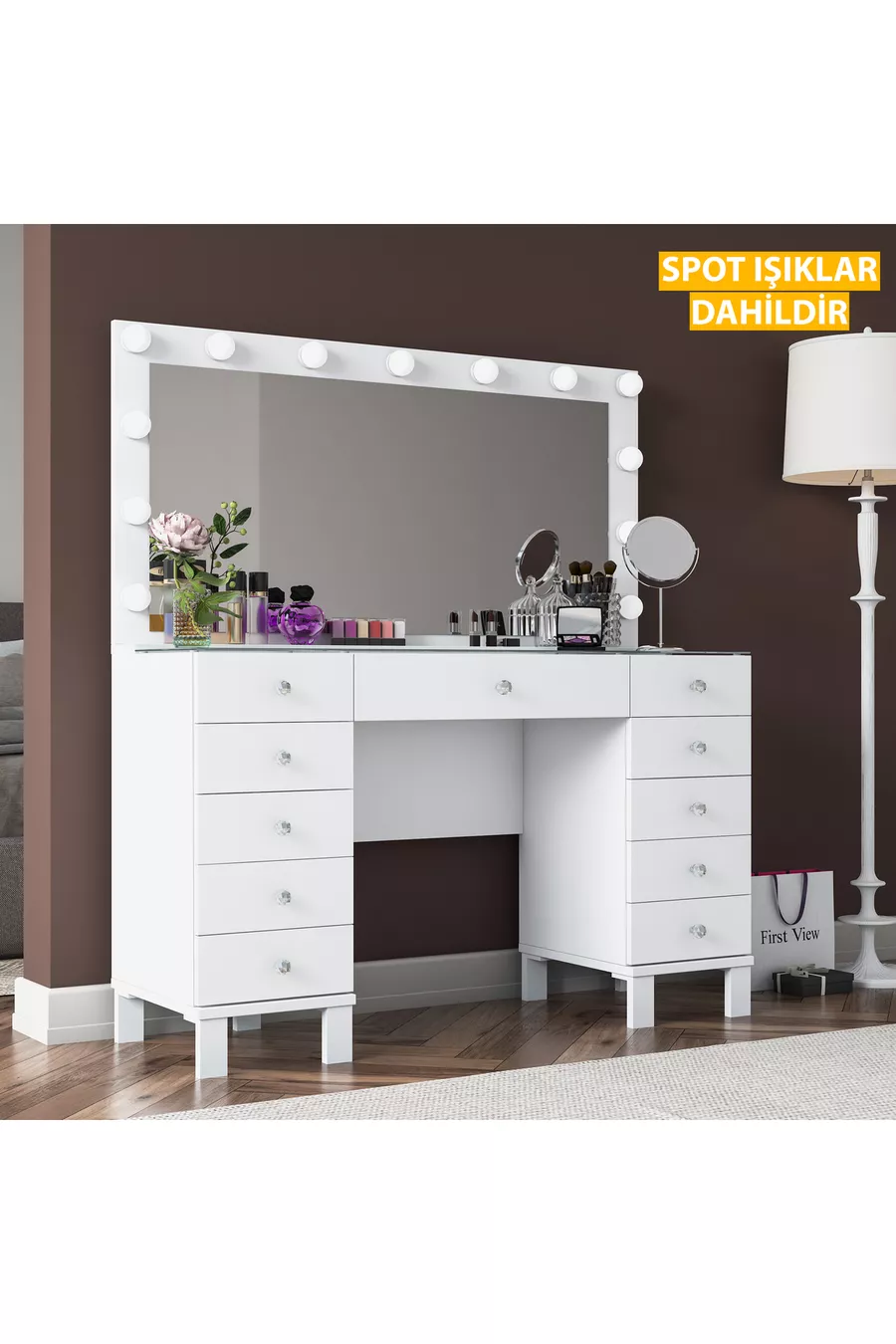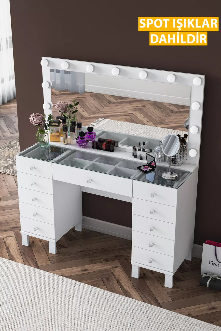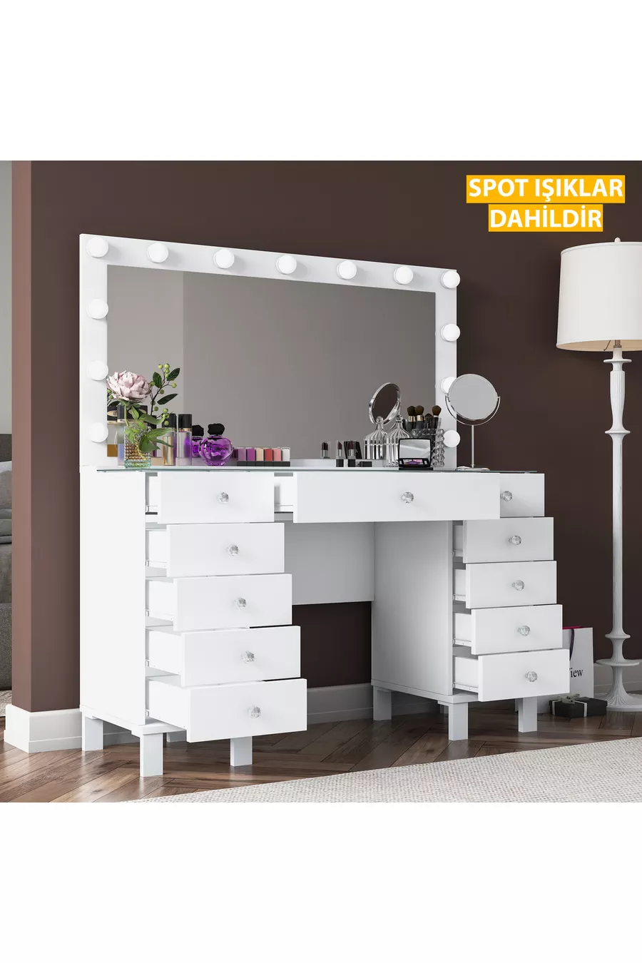 المادة: صنتالام الخاصية: ذو أرجل اللون: أبيض مدة الضمان: سنتان الارتفاع: 133 سم العرض: 120 سم وظيفة المرآة: مع مرآة العمق: 40 سم الطراز: حديث المنشأ: تركيا
