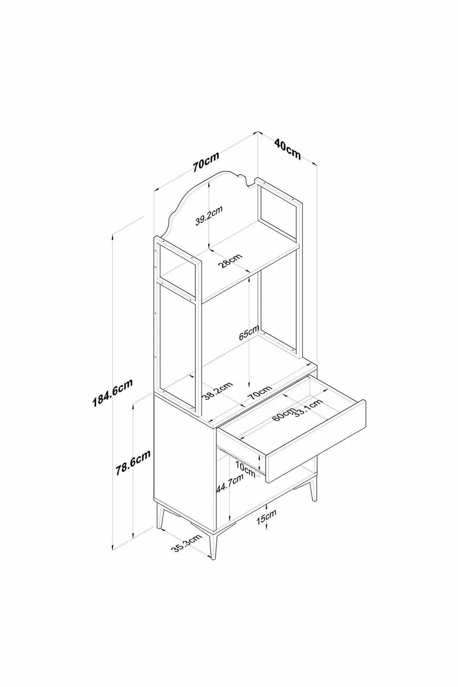 المادة: سونتالام عدد الأدراج: 1 اللون: بني الارتفاع: 185 سم العرض: 70 سم العمق: 40 سم مدة الضمان: سنتان الطراز: كلاسيكي الموضوع / الطراز: حديث بلد المنشأ: تركيا الخاصية: مع أدراج