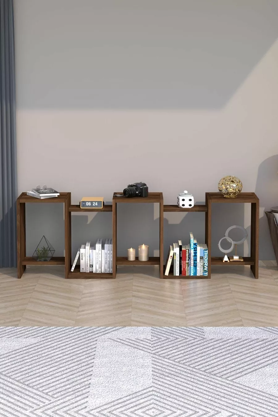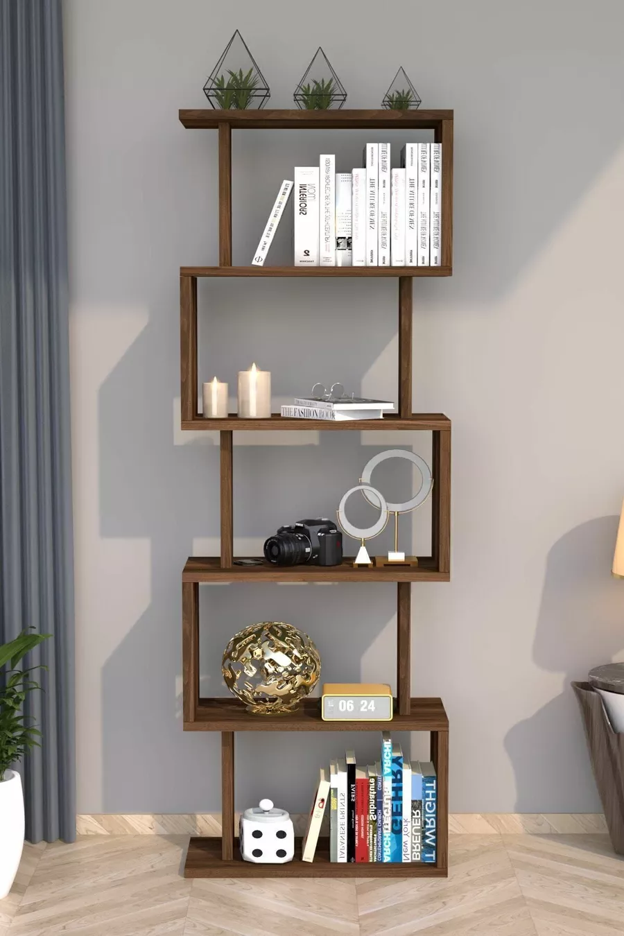 رف كتب ديكوري من الجوز