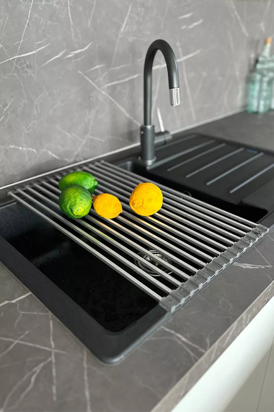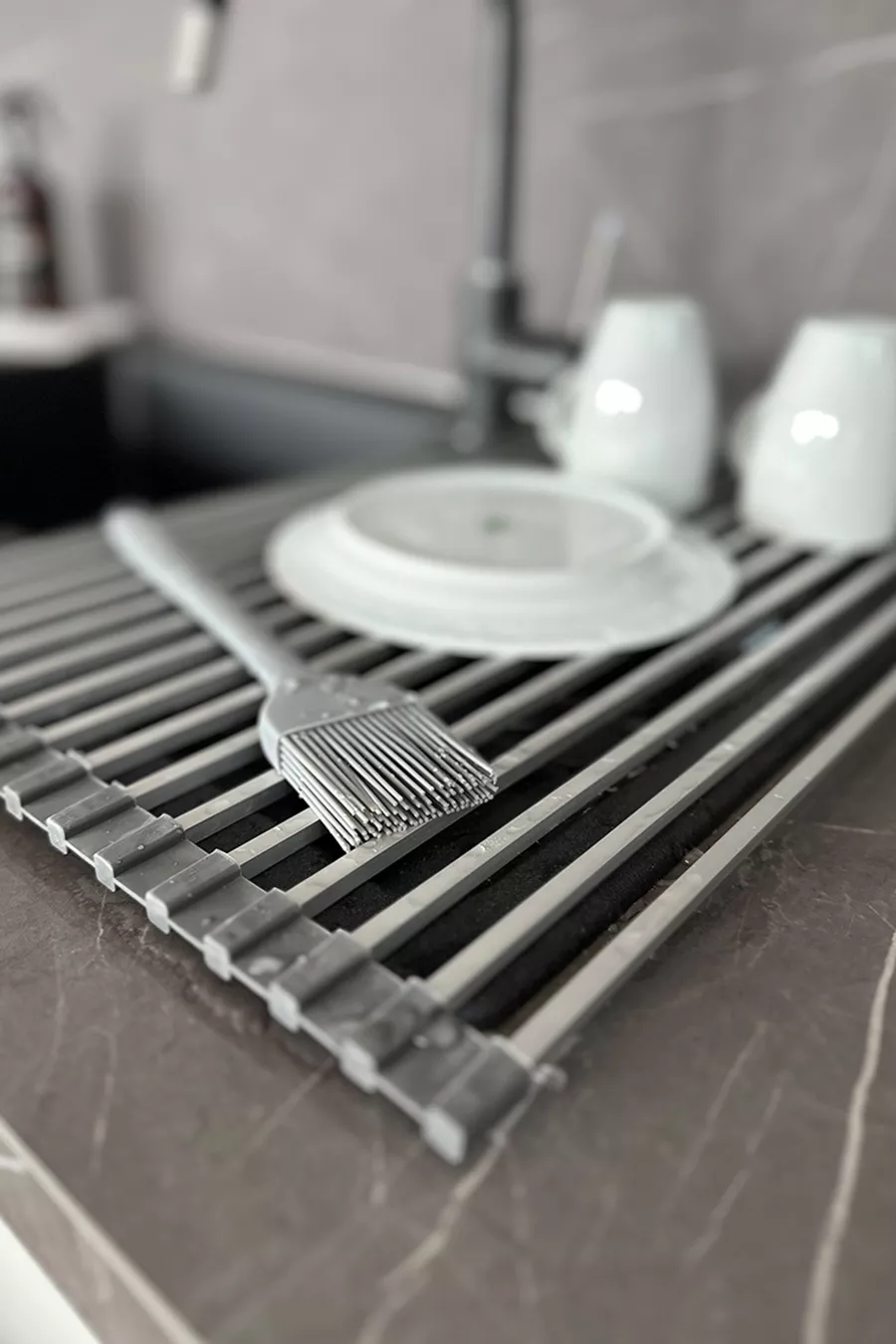 رف مطبخ قابل للطي لوضع فوق الحوض من بريمانوفا - رمادي