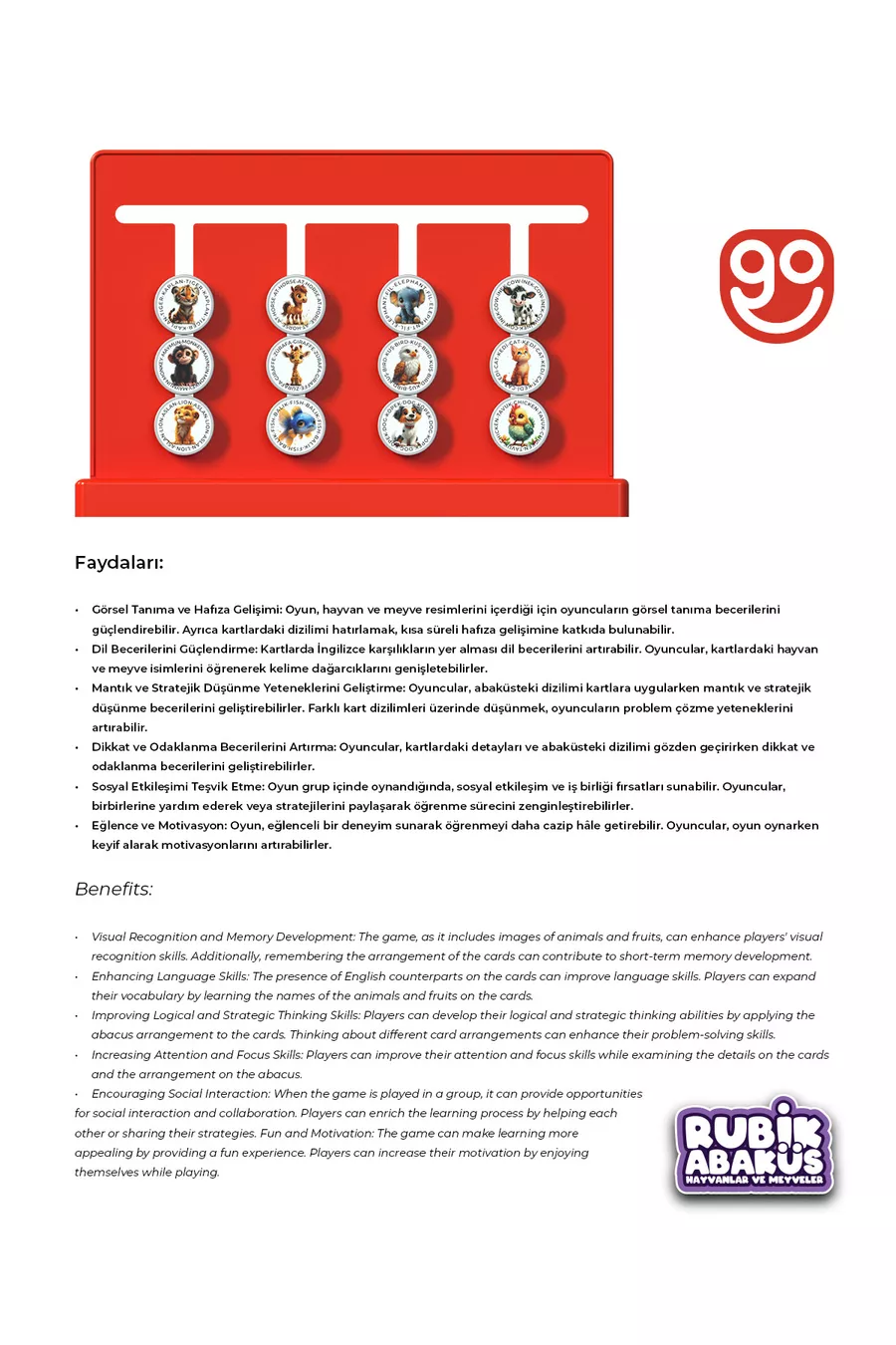 روبك أبكوس الفواكه والحيوانات لعبة تعليمية مونتيسوري بالتركية والإنجليزية