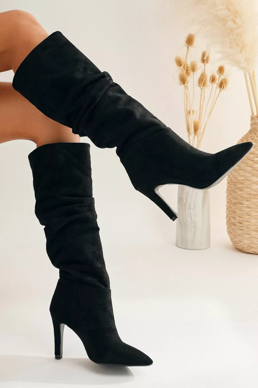ريماز الأسود من جلد الغزال منفاخ كعب طويل مدبب أحذية Riden