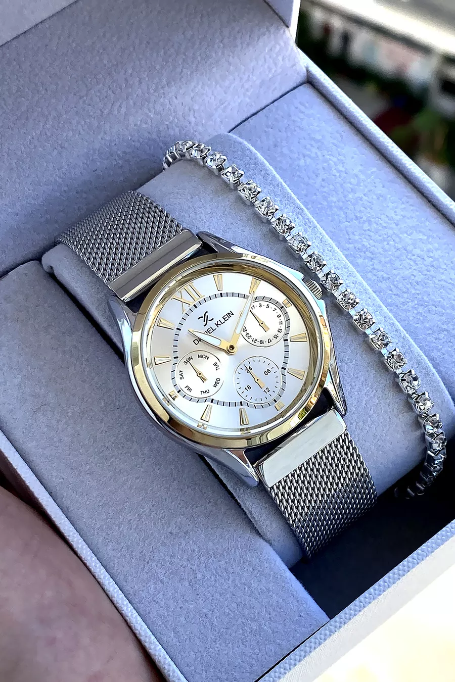 قطر العلبة: 31-35 مم لون العلبة: ذهبي مادة العلبة: فولاذ لون الحزام: فضي مادة الحزام: فولاذ مقاومة الماء: 3 ATM ميزة إضافية: مرخّص نوع الزجاج: معدني آلية الحركة: كوارتز شكل الزجاج: مستوٍ مدة الضمان: 2 سنة اللون: فضي المنشأ: الصين ميزة: مقاوم للماء