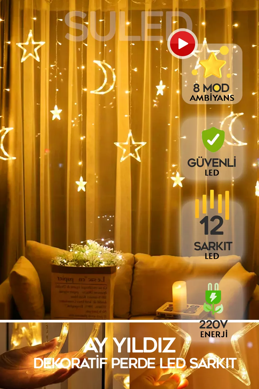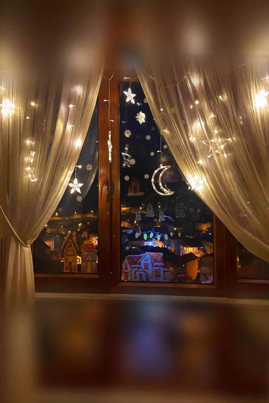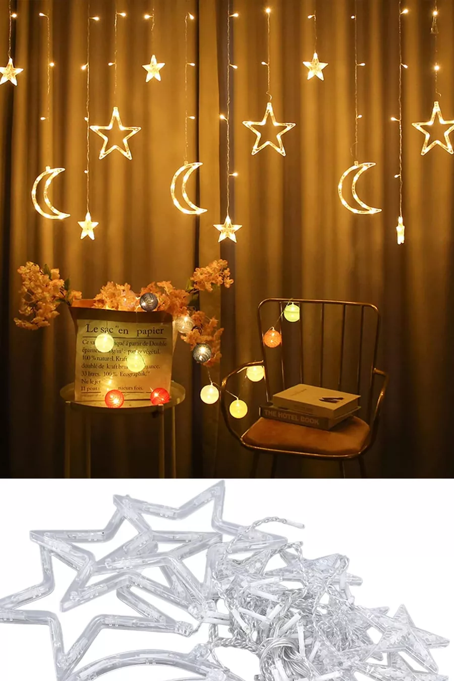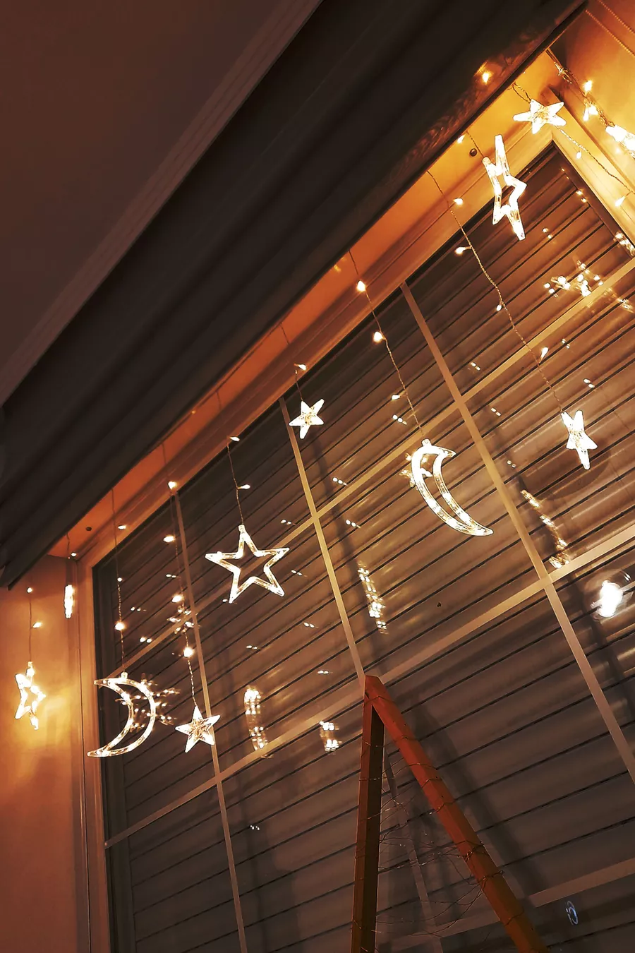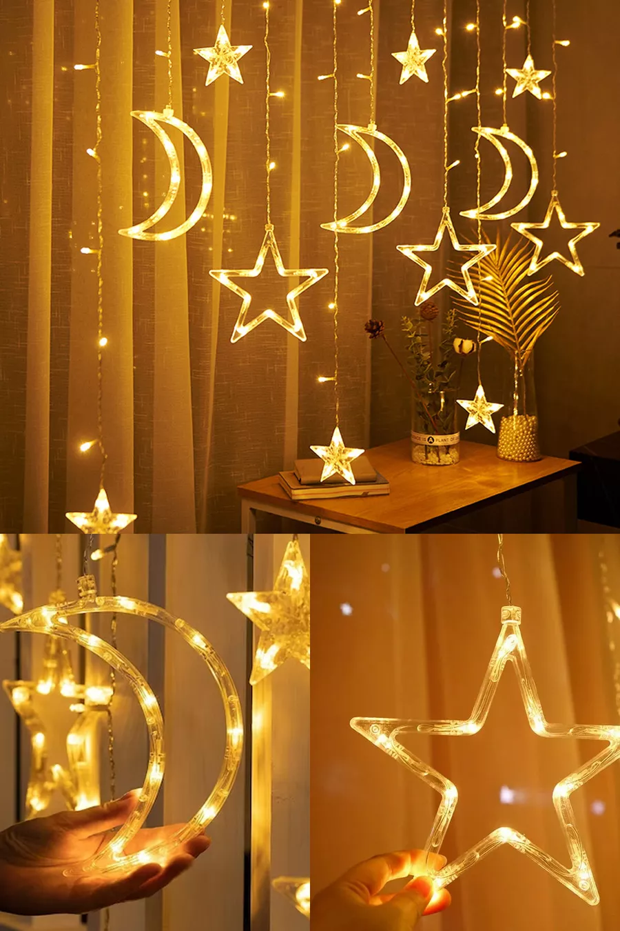 ستارة LED بالقمر والنجمة بنمط 8 وشرابات، ضوء زخرفي للمطبخ على شكل ستارة، مصباح LED