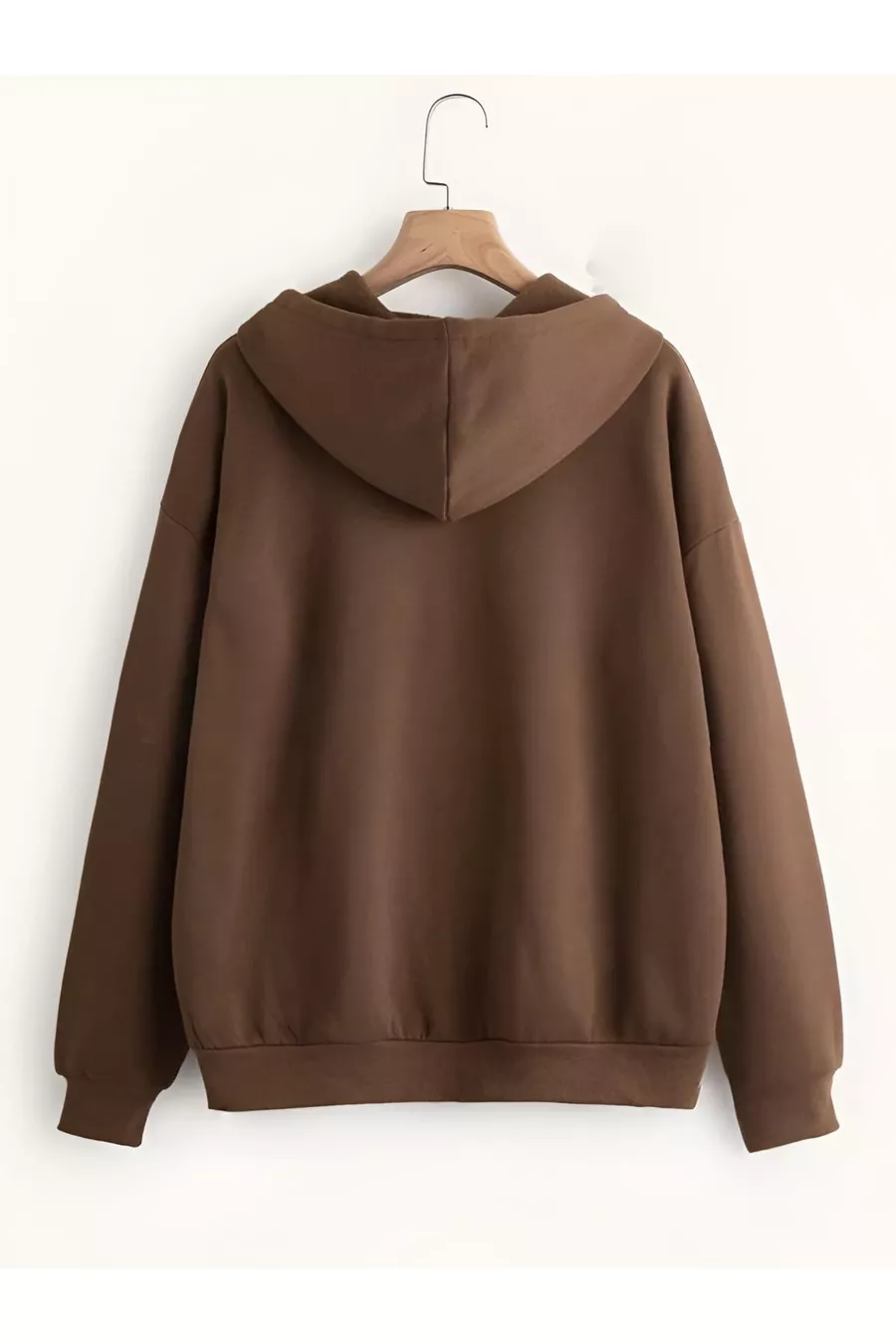 سترة بغطاء للرأس بلون القهوة بسحاب