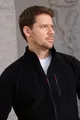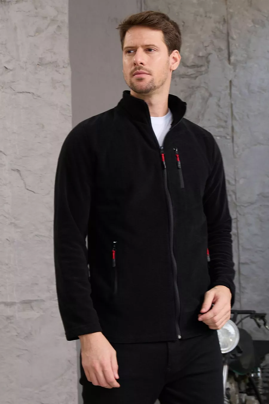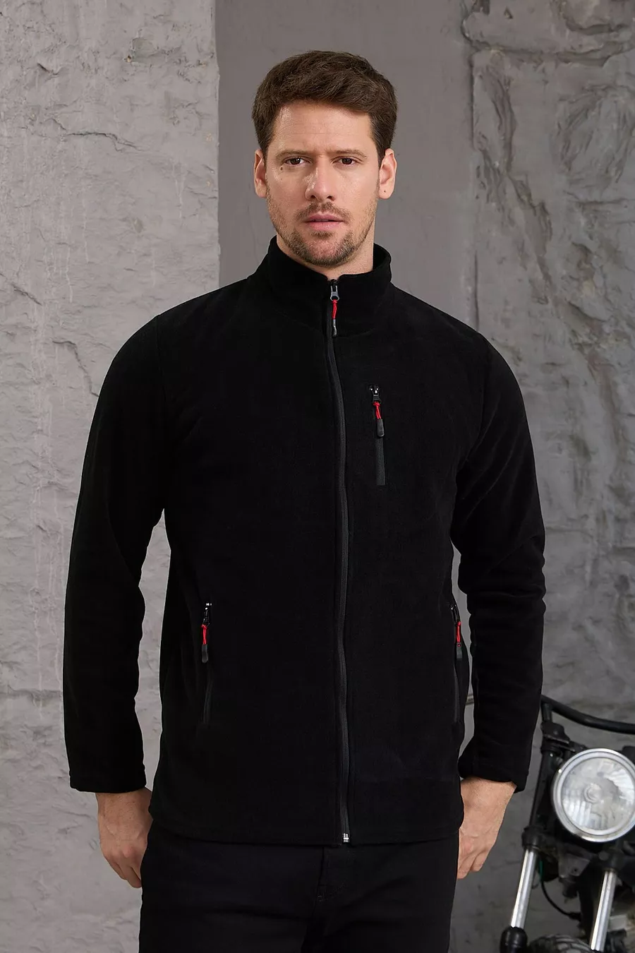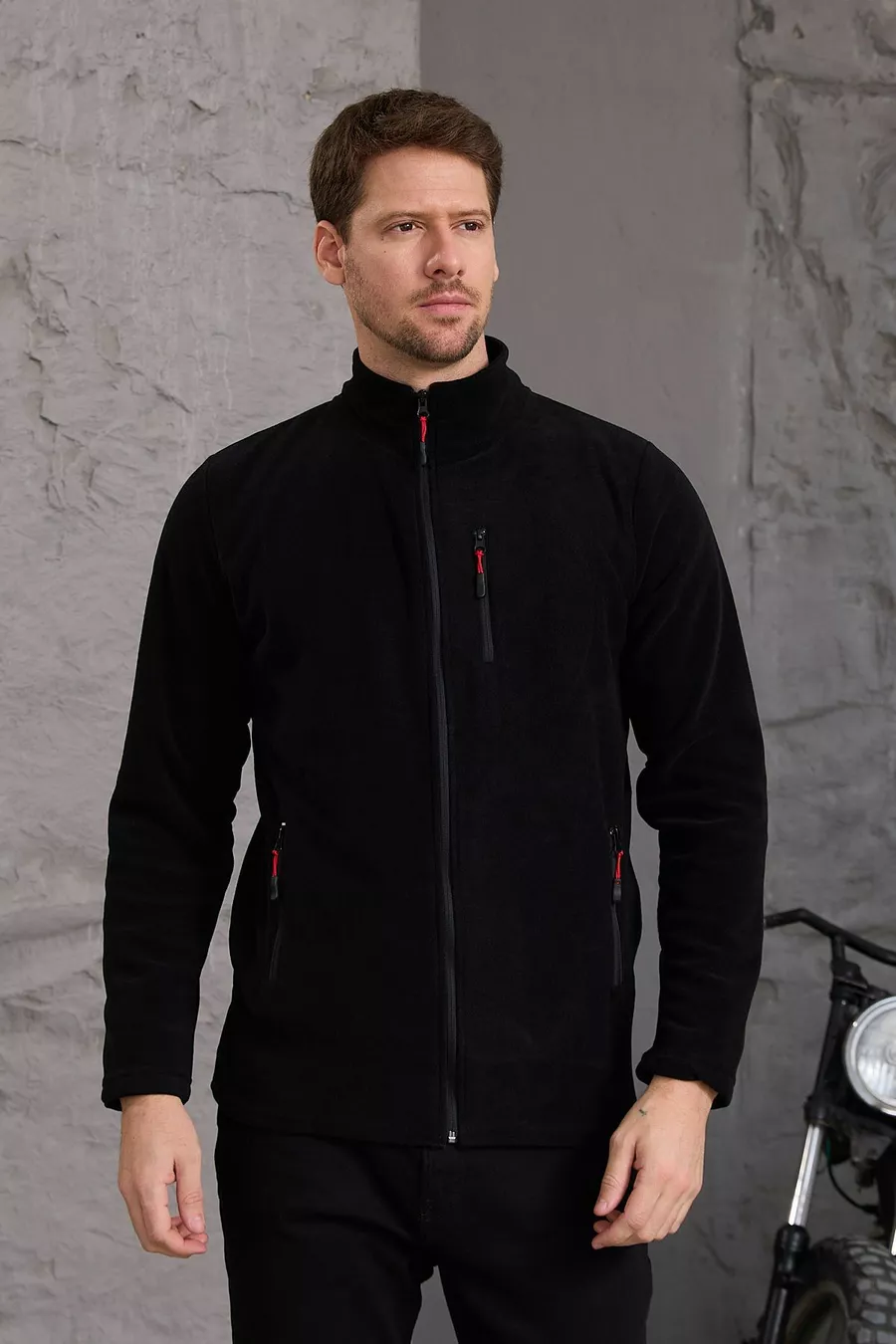 سترة رجالية شتوية بسحاب كامل من القماش القطني السميك بولار باللون الأسود