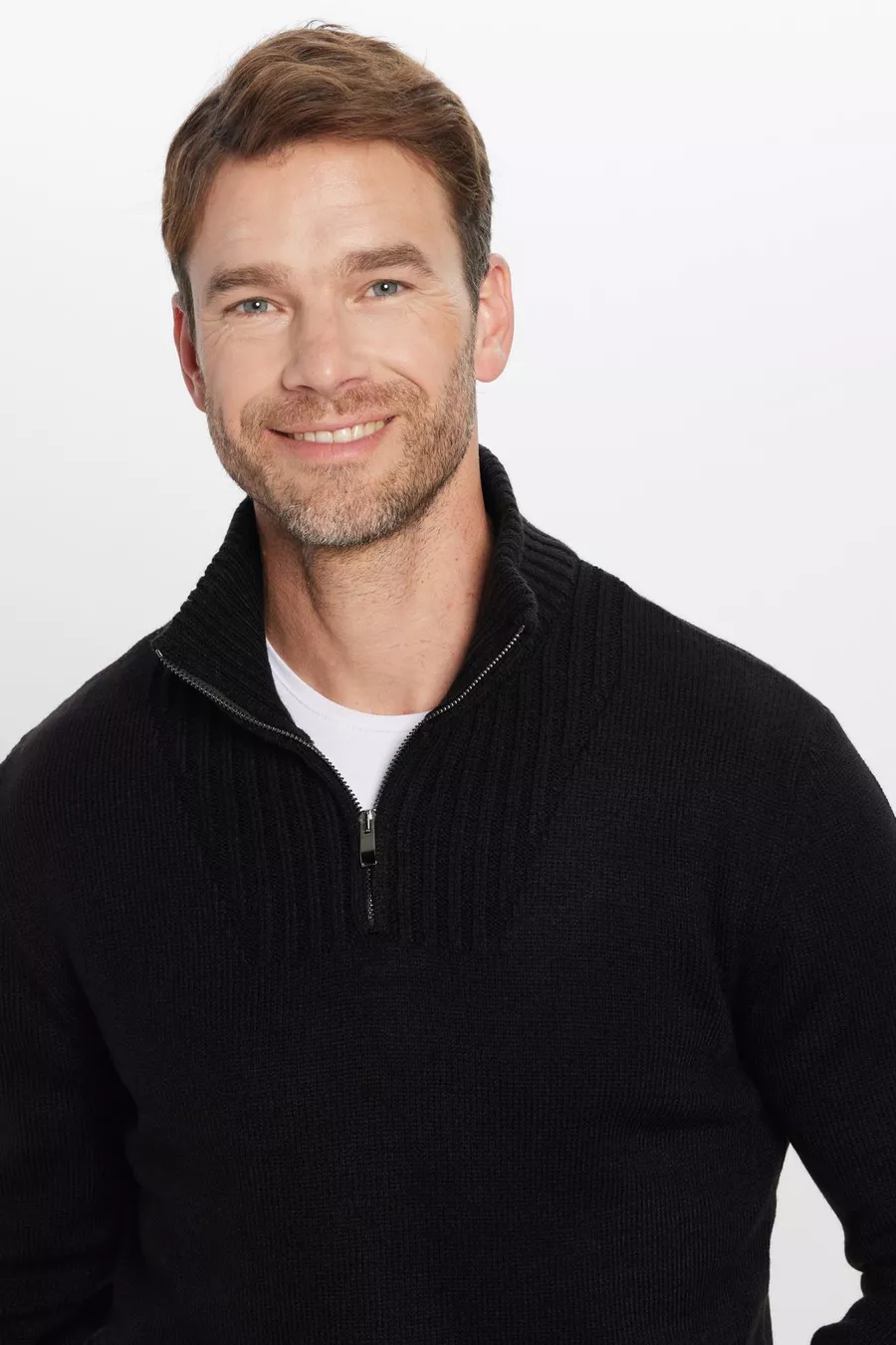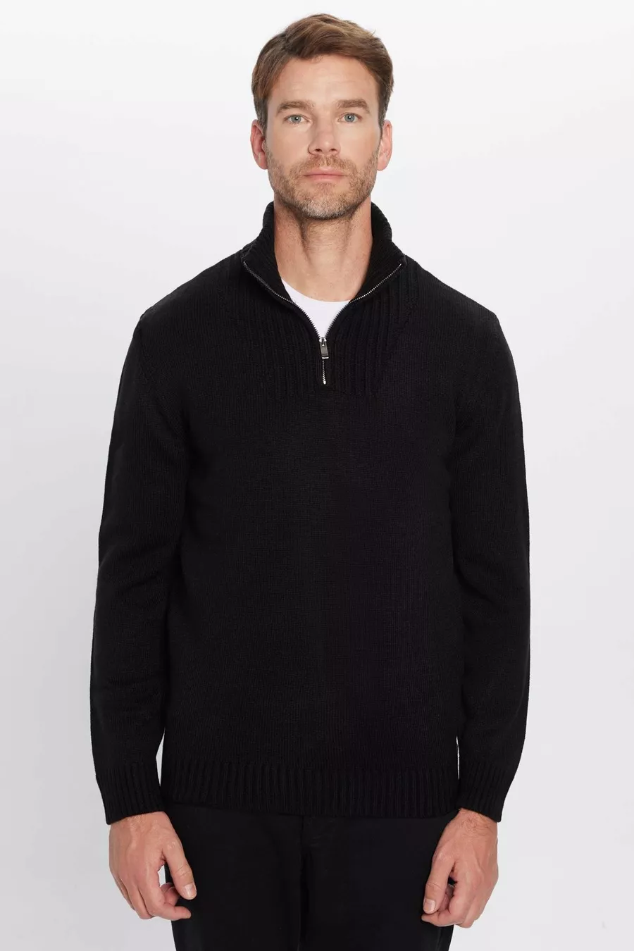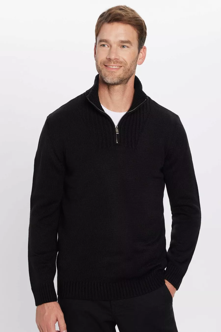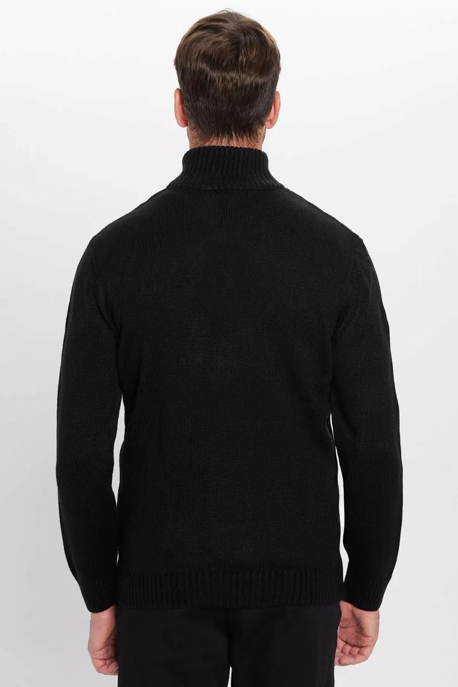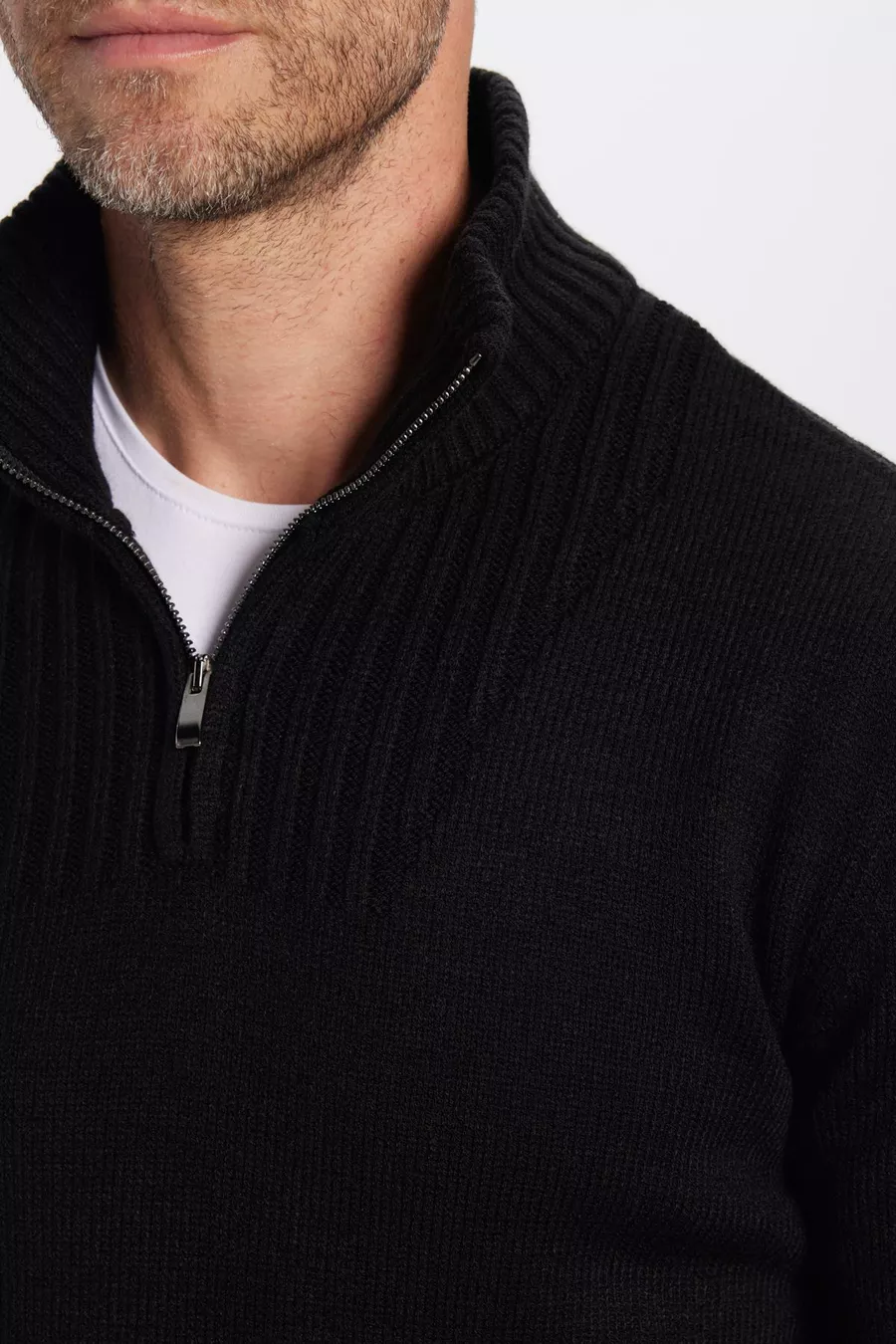 سترة رجالية سوداء ضيقة التصميم بياقة عالية بسحاب ونقشة أرمور