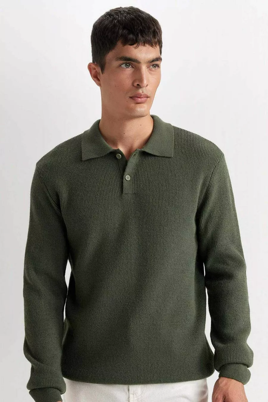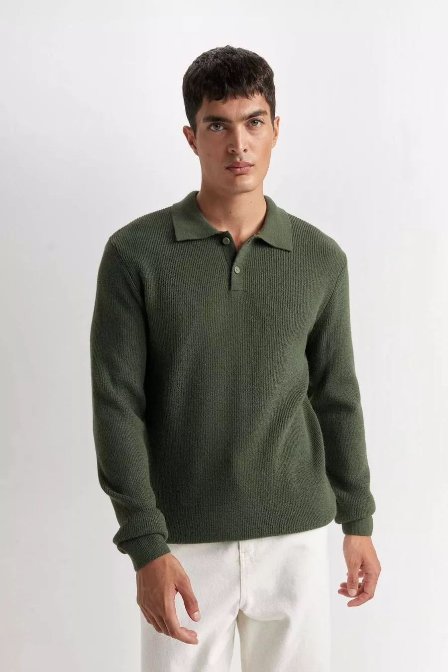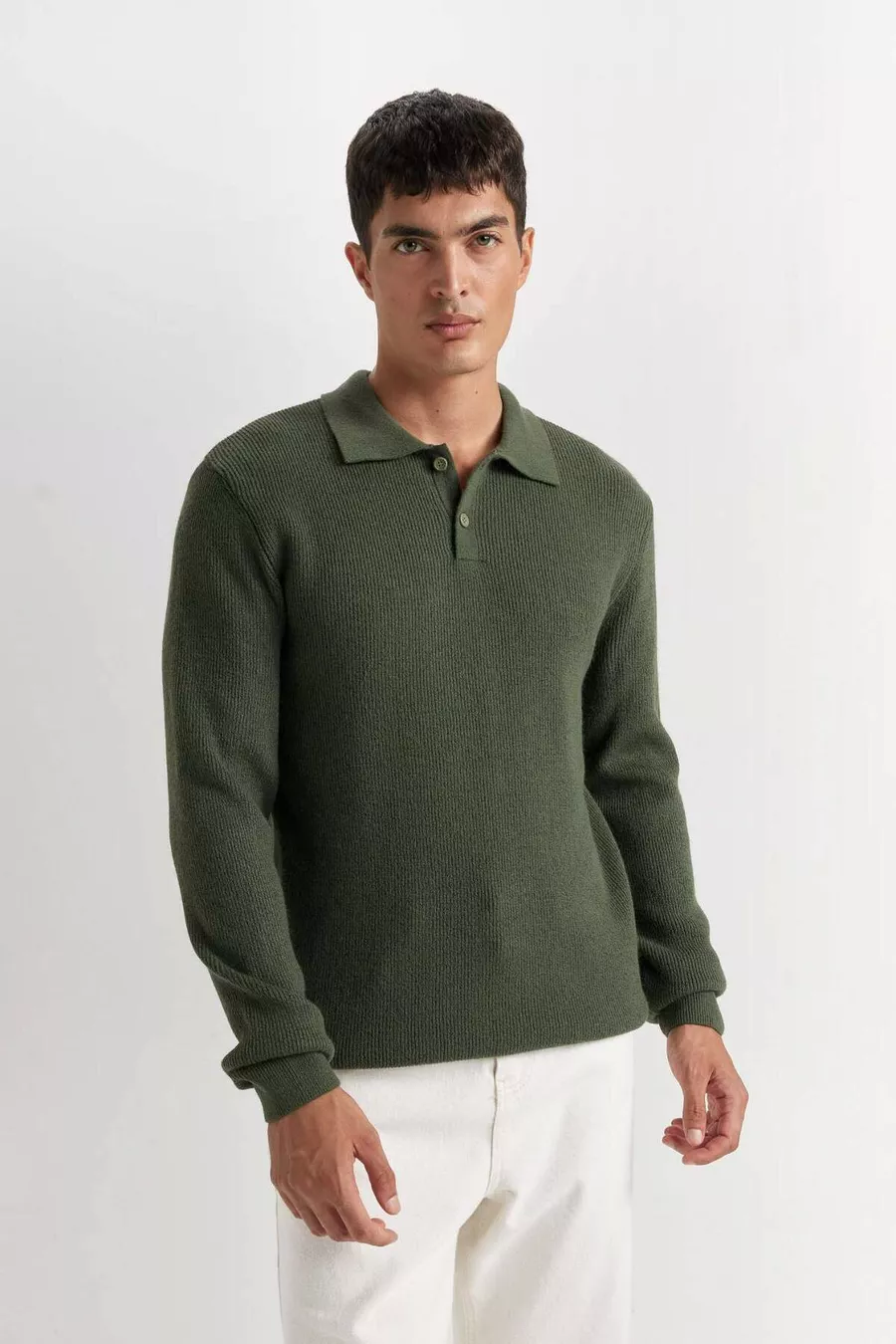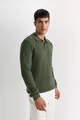 سترة صوف بولو بياقة عادية، مقاس قياسي بلون زيتي WN