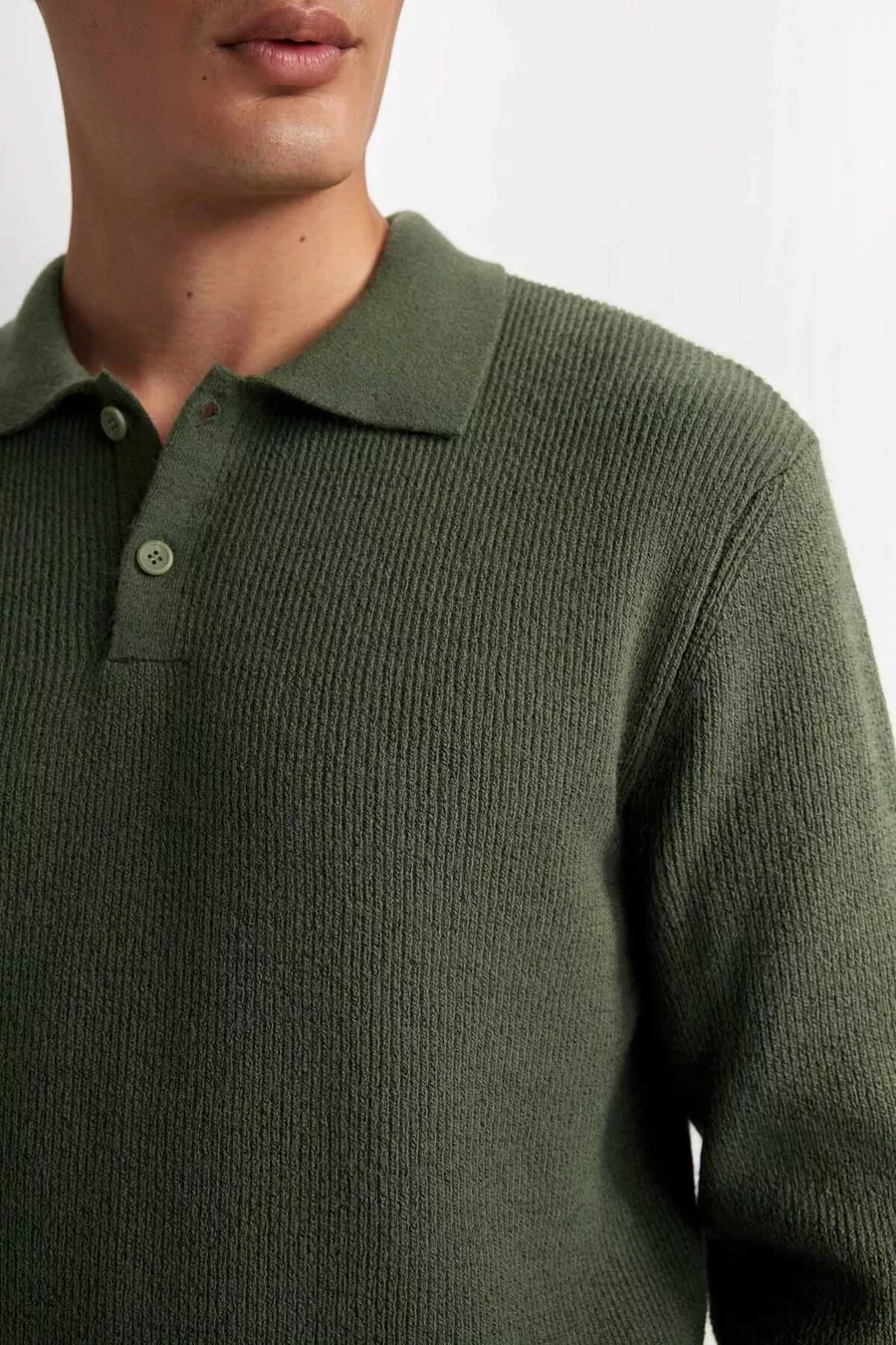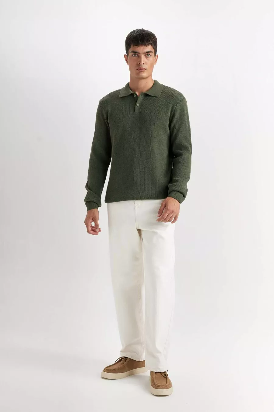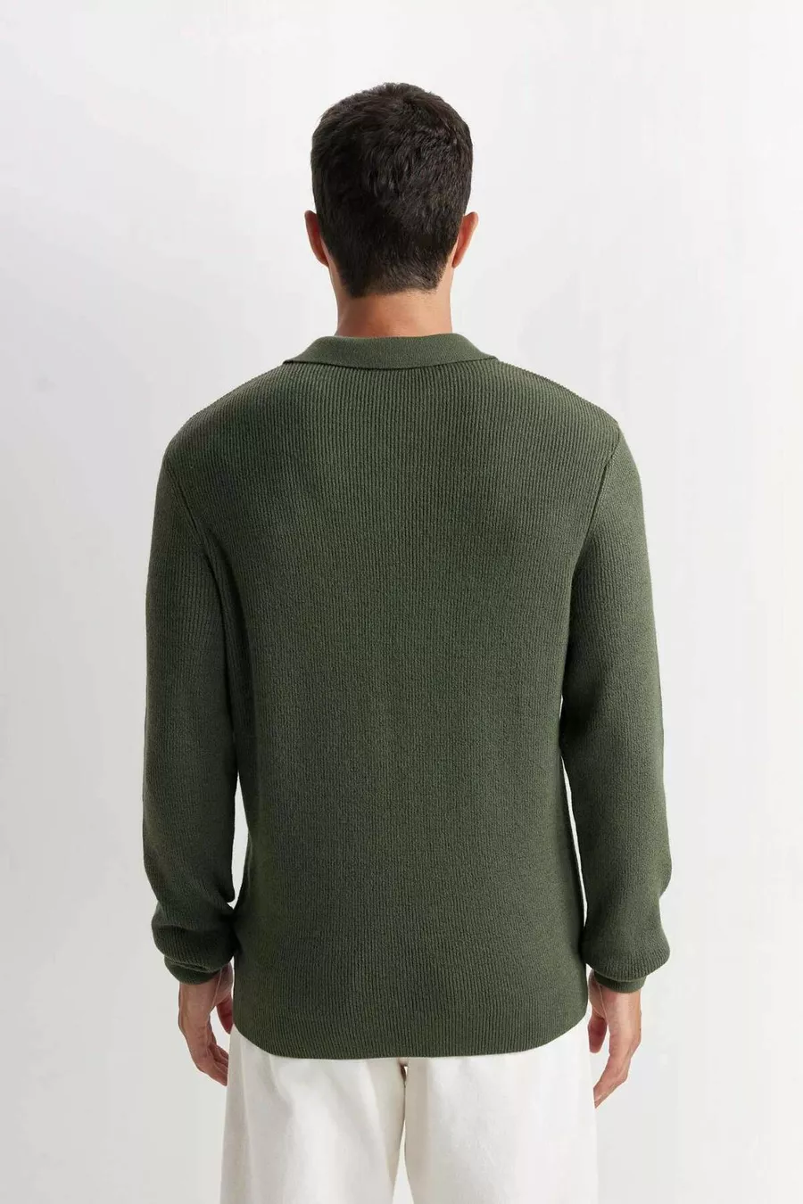 سترة صوف بولو بياقة عادية، مقاس قياسي بلون زيتي WN