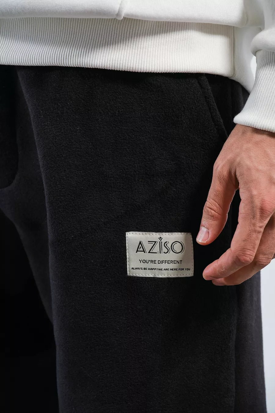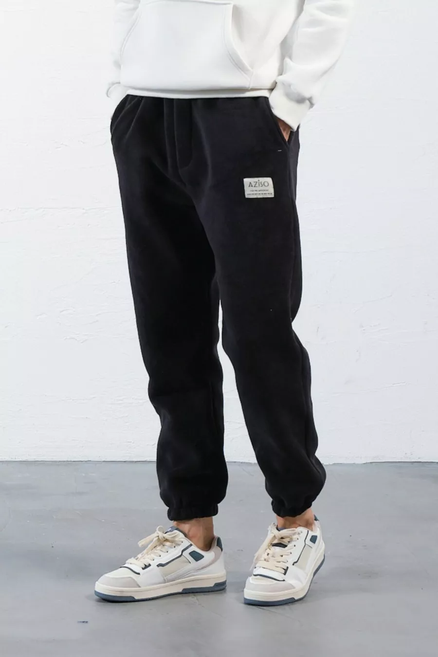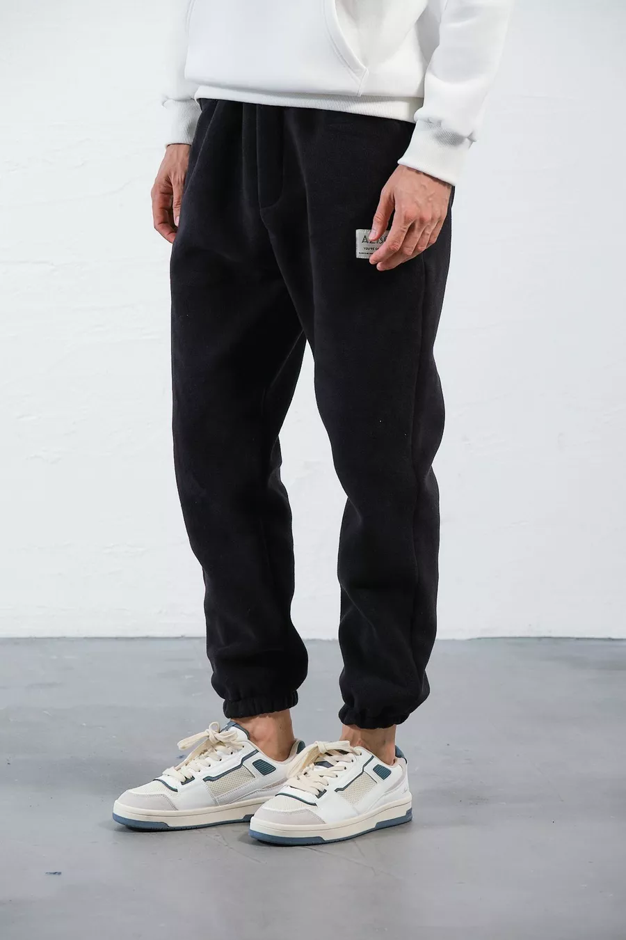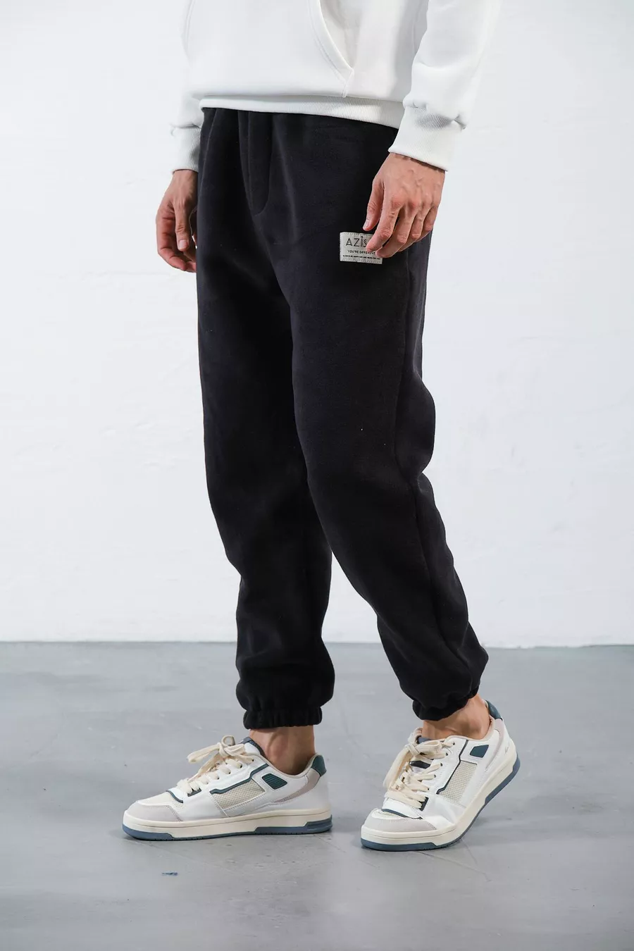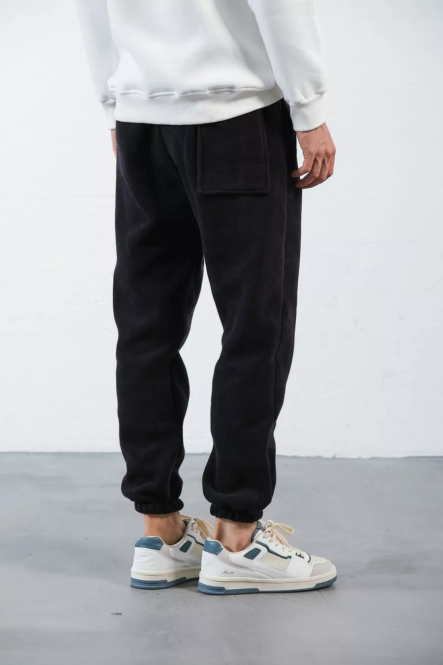 سروال رياضي رجالي فضفاض من قماش الفلانل الأسود